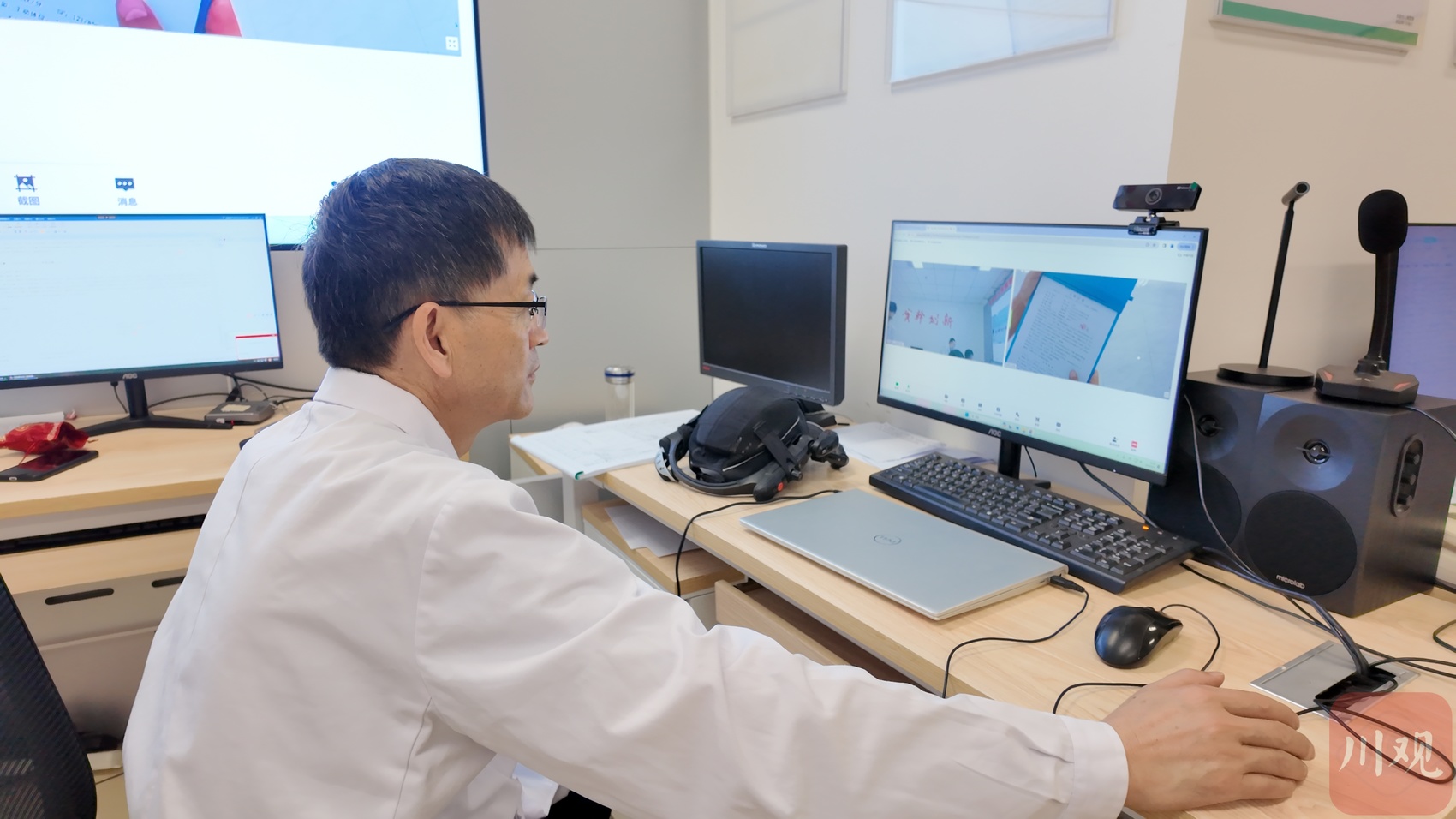 “把鏡頭對著病例我看看,再看看患者情況……”9日上午,在醫院急診科辦公室,范從華正通過“5G+縣域急診急救大平臺”,與西昌市佑君鎮中心衛生院進行AR遠程會診。