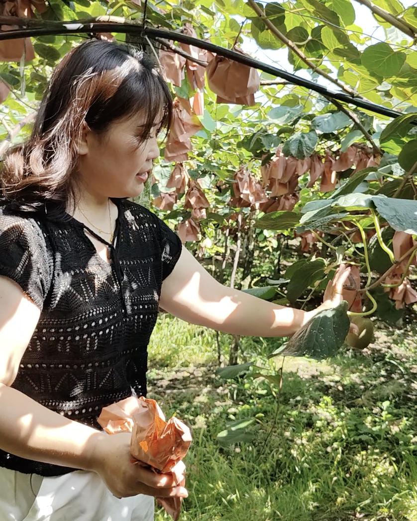 周里民查看獼猴桃熟度。