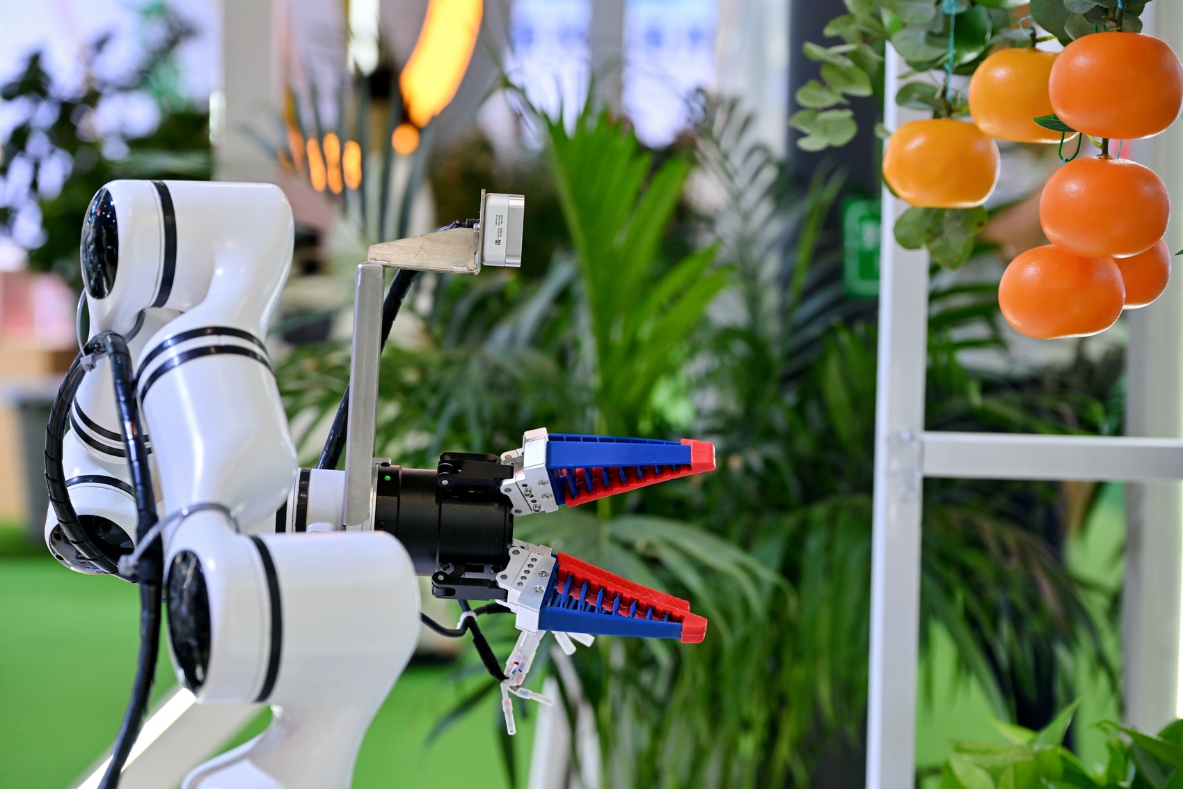 中國農科院都市所展區,一款正在采摘鮮果的智能機器人引得眾多市民駐足。“這是我們研發的上肢助力外骨骼機器人。”中國農科院都市所人工智能團隊申超偉介紹,人力短缺是當下農業發展的一大瓶頸,而這款穿戴設備可以應用在果園采摘、套袋等精細化生產場景,讓機器有效取代人工。