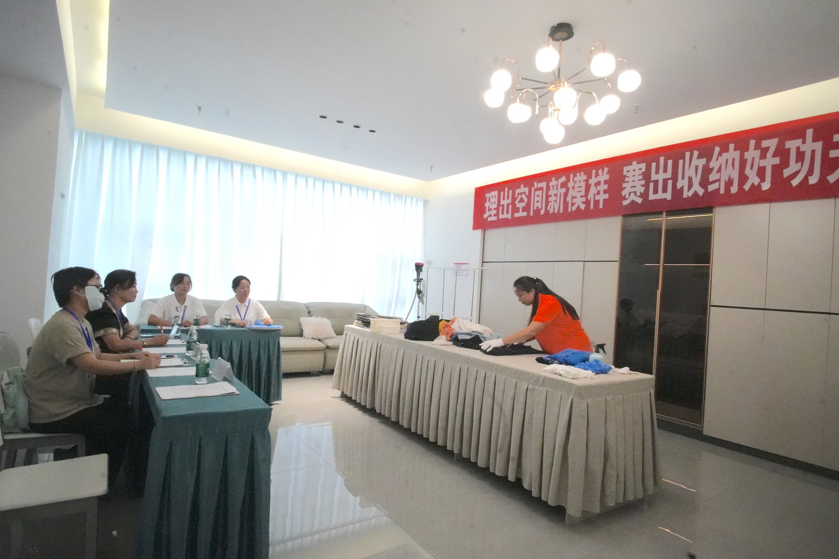 衣物如何整理、母嬰護(hù)理流程、老人護(hù)理技巧,插花技藝比拼……當(dāng)天,大家在監(jiān)考老師和評(píng)委的注視下,圍繞不同的比賽項(xiàng)目,從筆試答題到現(xiàn)場(chǎng)實(shí)操,詮釋著一名優(yōu)秀家政服務(wù)從業(yè)人員所需的技能標(biāo)準(zhǔn)。