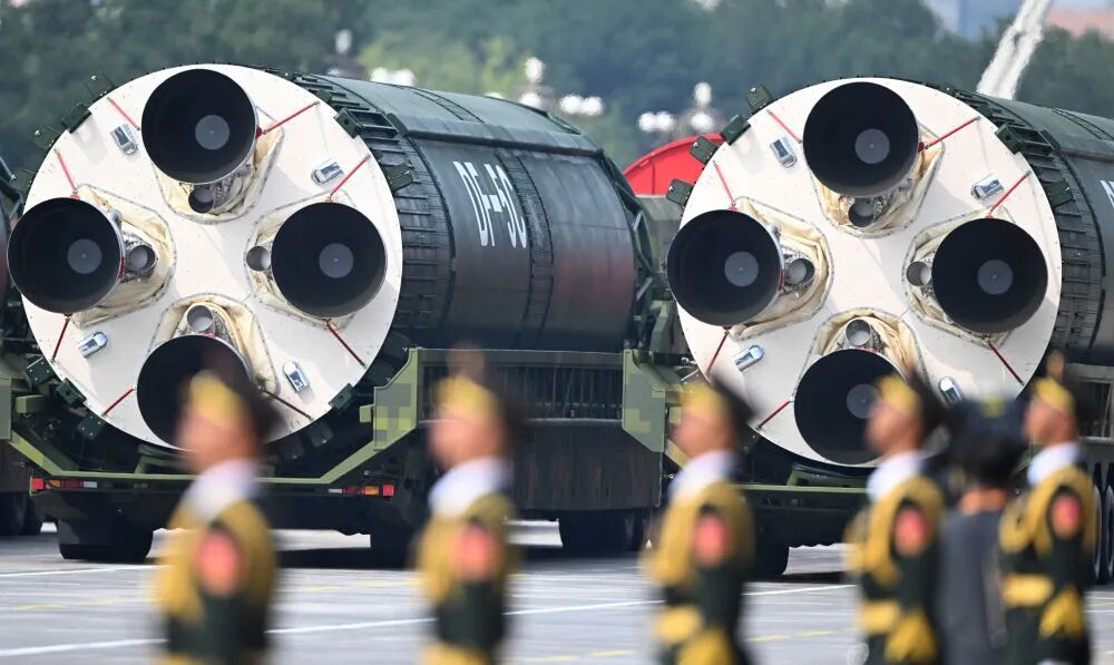 2025年9月3日,紀念中國人民抗日戰爭暨世界反法西斯戰爭勝利80周年大會在北京隆重舉行。這是核導彈第二方隊接受檢閱。新華社記者 楊冠宇 攝