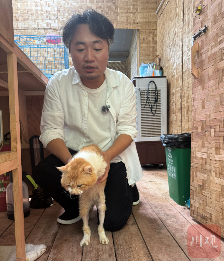 被吸引進村的有不少外地人。26歲的冉洋來自廣元蒼溪,是團隊的專職獸醫,來到天興橋村5年。“我是粉絲奔現,2020年看到‘老瘋楊’的直播就加入了團隊。能在這里幫助小動物,是我向往的生活。”冉洋說。