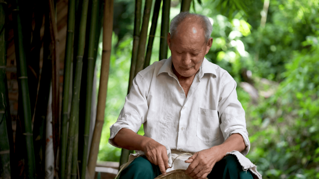 天興橋村制作竹編的老人。西充縣委宣傳部供圖
