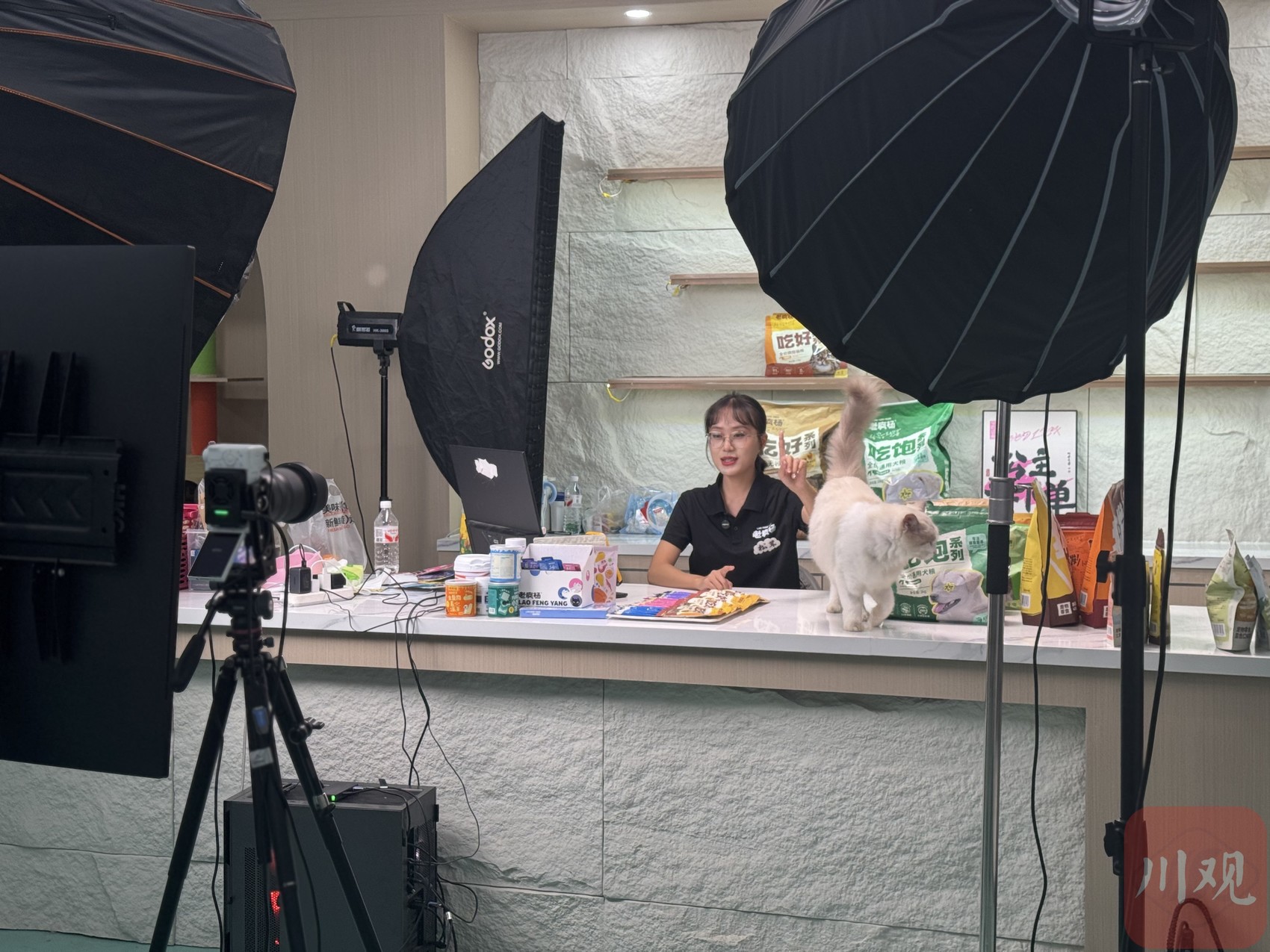 “這款貓糧是我們的明星產品。來3、2、1,上鏈接!”在“老瘋楊”電商直播工作區,10名專職主播“接力”,每天19小時不間斷直播。“‘雙十一’在即,我們在為產品預熱。目前日均直播間銷量穩定在1000單以上,預售開始后,這一數字將翻五倍。”直播運營總監魏厚正說。