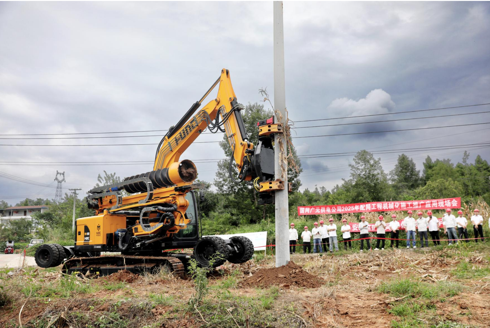 長期以來,配電網立桿作業,尤其是在廣元這樣的多山地帶,面臨著地形復雜、人力成本高、安全風險大、效率低下等多重困境。國網廣元供電公司貫徹落實國家電網公司配網工程施工轉型升級三年行動要求,引入并試點應用新型“鉆孔立桿一體機”,全面推動“機械代人”作業。