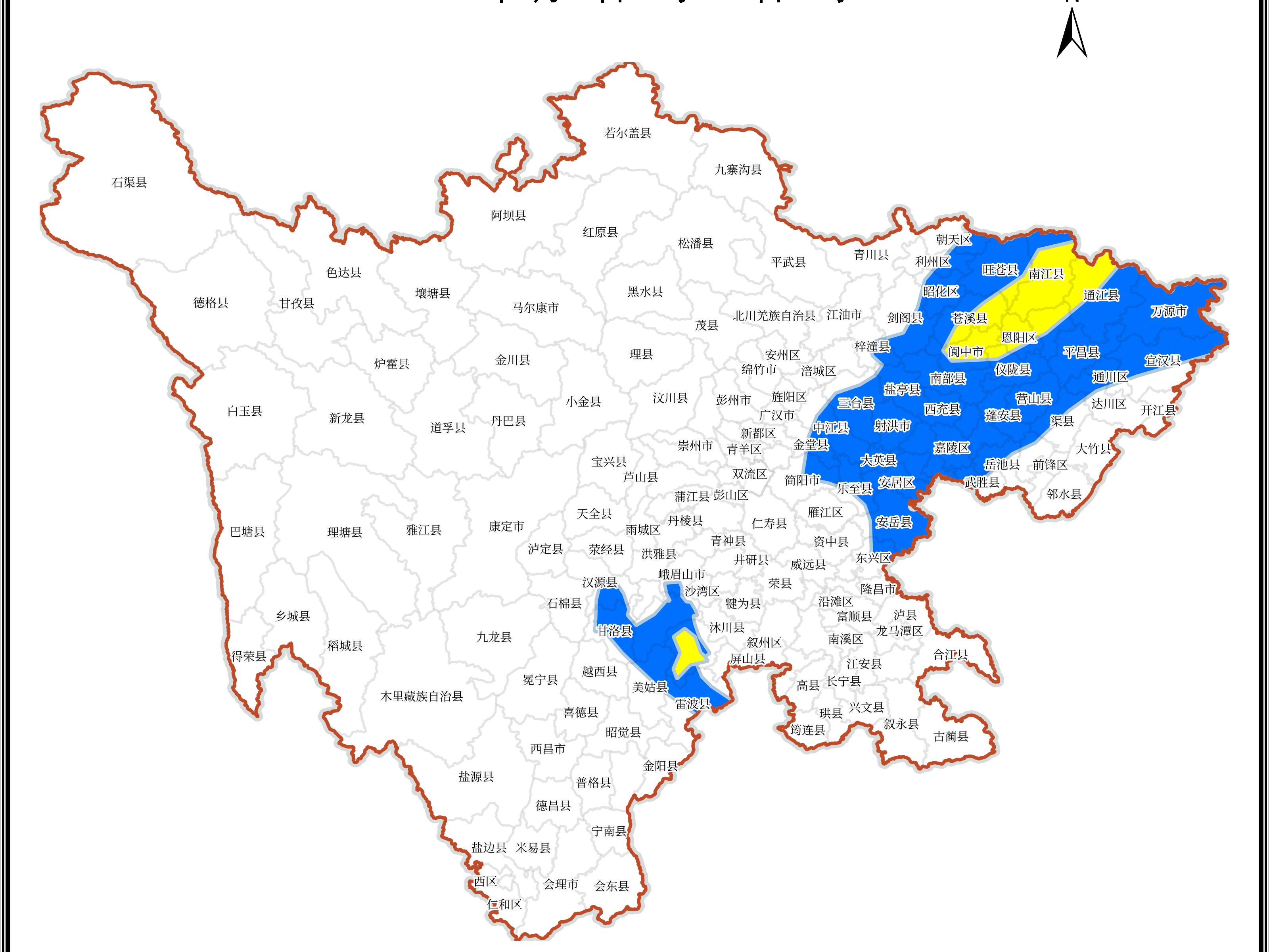 2025年9月11日20時至12日20時,內江市東興、隆昌、市中區、資中、威遠,廣安市廣安、鄰水、前鋒、岳池、華鎣、武勝,瀘州市納溪、瀘縣、龍馬潭、合江、江陽、敘永、古藺,達州市大竹、開江、達川、渠縣、通川、宣漢、萬源,資陽市安岳、樂至、雁江,宜賓市江安、興文、南溪、筠連、珙縣、長寧、高縣、屏山、翠屏、敘州,遂寧市安居、船山、蓬溪,自貢市富順、大安、沿灘,南充市高坪、嘉陵、營山、蓬安、順慶,涼山州雷波、越西、美姑、西昌、喜德、冕寧、甘洛、鹽源、昭覺、布拖、金陽、德昌、寧南、普格,攀枝花市鹽邊、米易,樂山市馬邊、峨邊,巴中市平昌,雅安市石棉等14個市(州)69個縣(市、區)可能發生山洪災害。