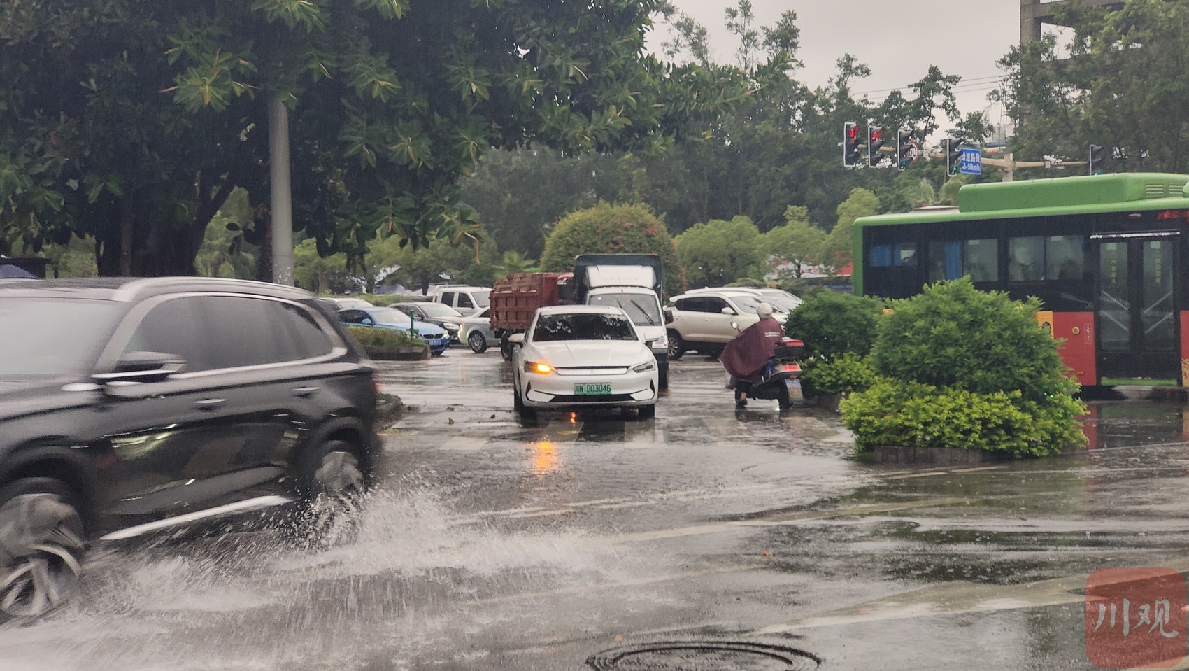9月12日上午,西昌街頭,汽車在雨中行駛。何勤華攝
