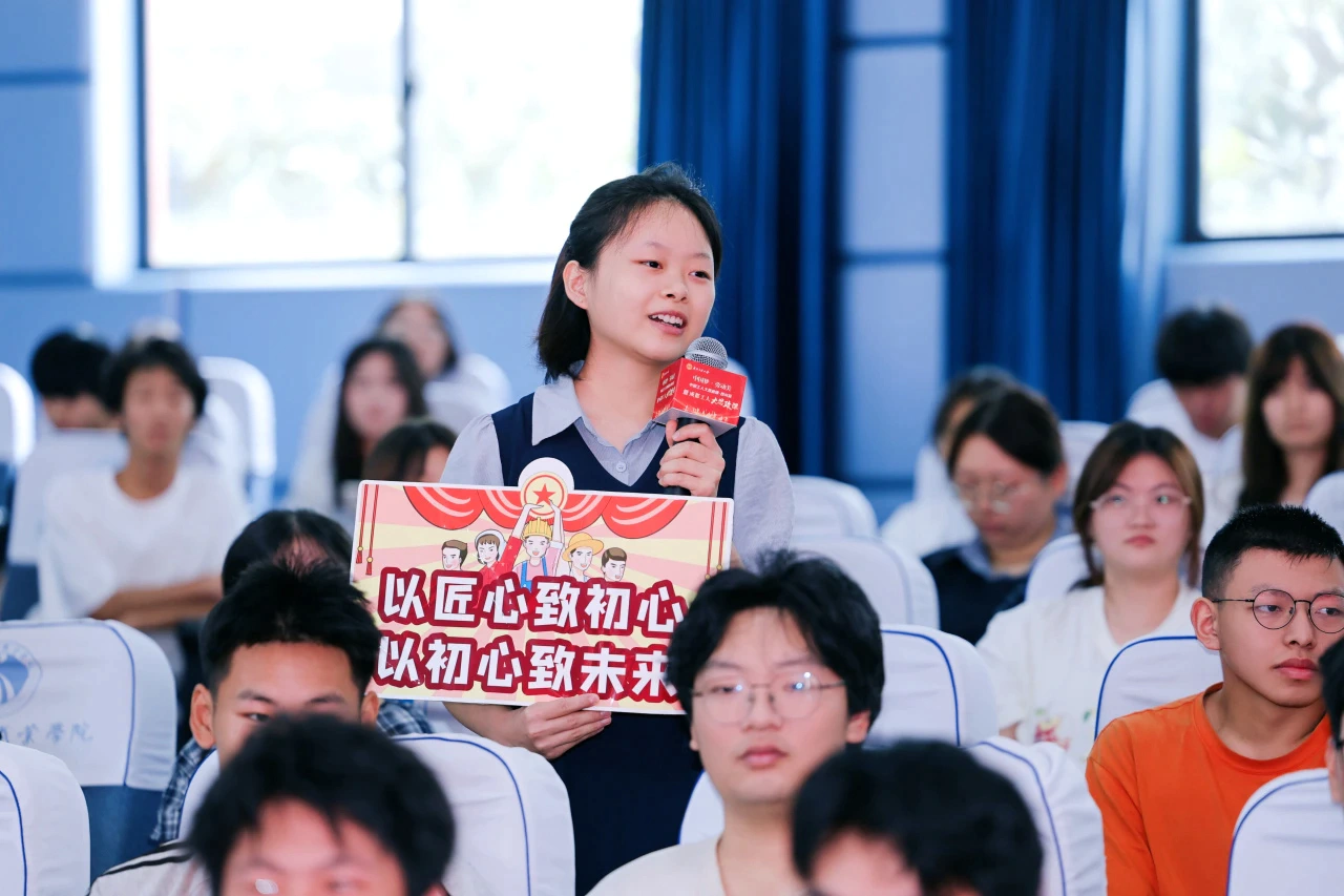 在“思政播客”環節,三位勞模圍繞“技術為本,從校園到實踐”“用技術知識實現職業價值”等話題,與現場學生及線上觀眾展開互動。