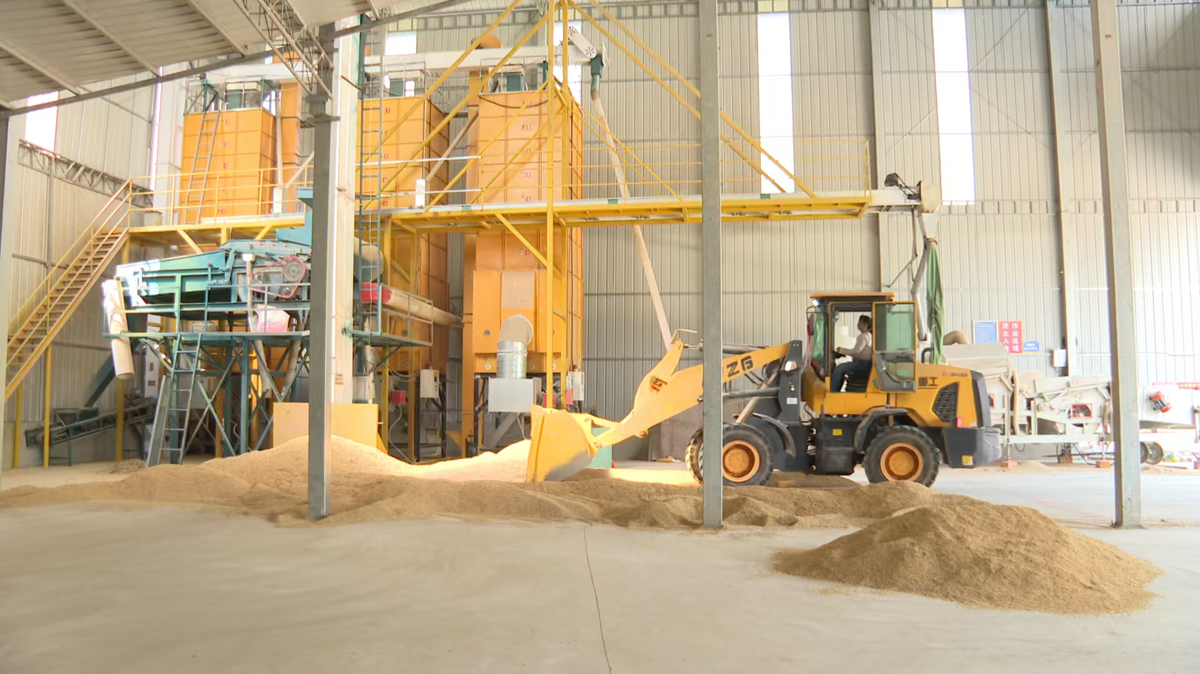 糧食豐收,烘干是最后一關。在該鎮合作社的烘干中心廠房內,熱浪裹挾著谷香,剛收割的濕稻谷正通過傳送帶涌入烘干機。