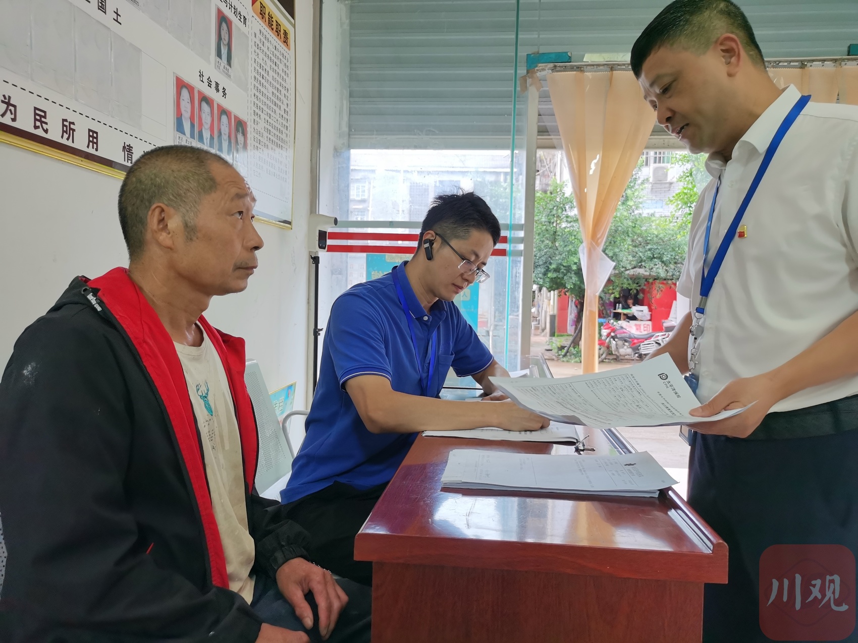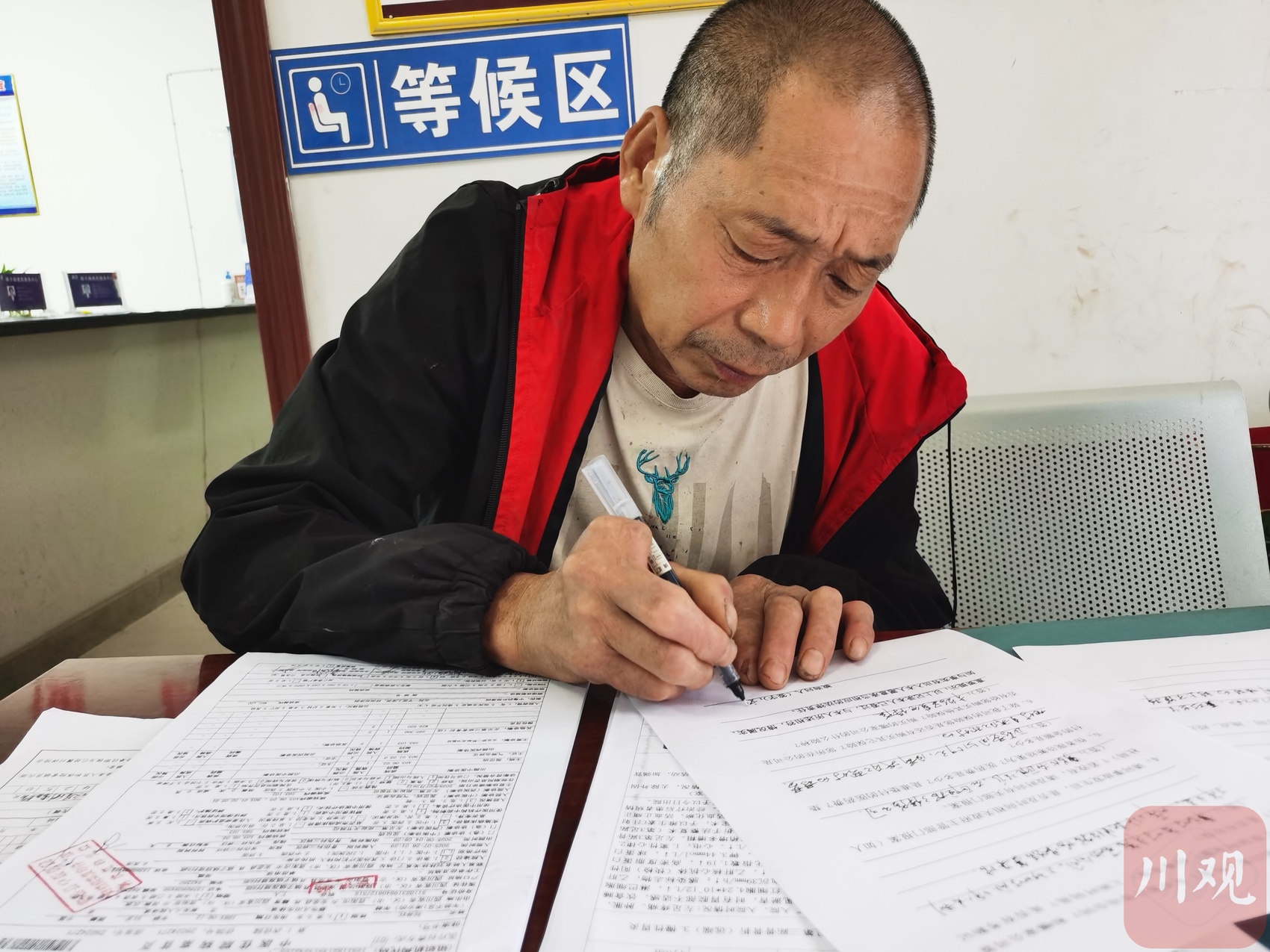 9月12日,資陽市安岳縣鎮子鎮便民服務中心內,61歲劉井江在安岳縣人社局工作人員和鎮村干部的陪同下,與保險公司工作人員辦理理賠手續。一份12元保費的保單,遭遇意外后獲得4927元賠付金,有效緩解了劉井江的經濟負擔。
