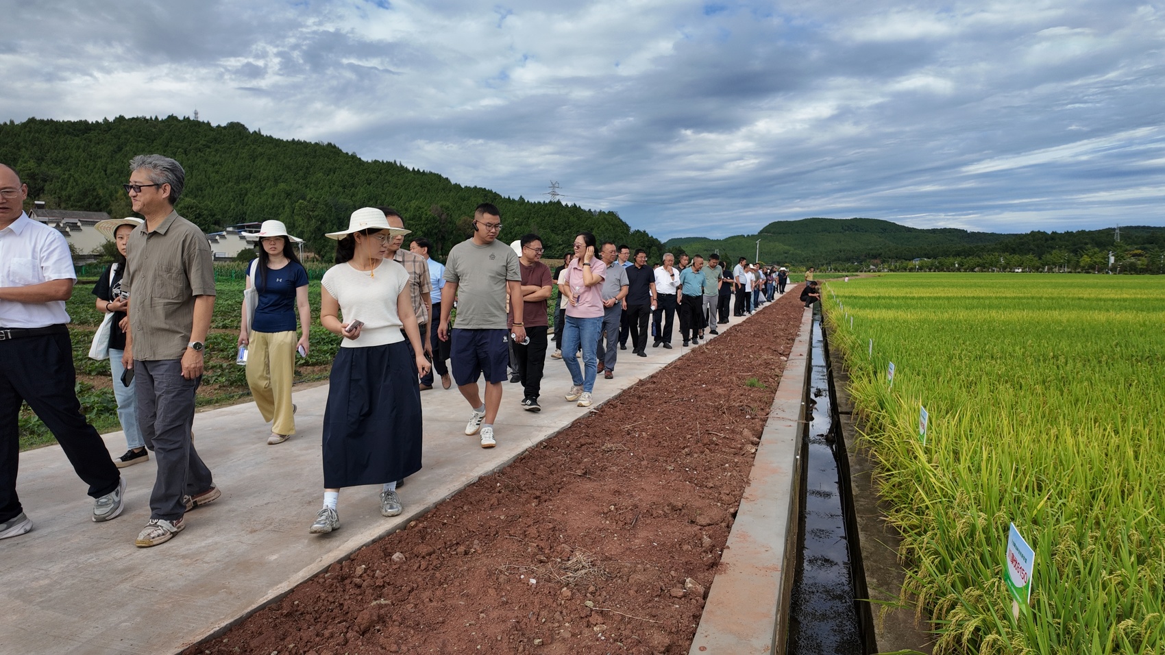 現場參會人員還深入示范園區,實地觀摩了水稻、玉米等作物新品種的生長情況。該示范園占地1000畝,其中800畝為高標準農田,地勢平坦、排灌便利、交通暢通。在水稻田中,大家細致查看葉片的挺直程度、穗粒飽滿度,對138個水稻品種一一評估,研判其生長態勢與產量潛力。玉米示范區內,40個夏播玉米品種郁郁蔥蔥、長勢喜人,各展優勢。人們不時舉起手機拍照記錄,為后續品種篩選與技術推廣積累第一手資料。