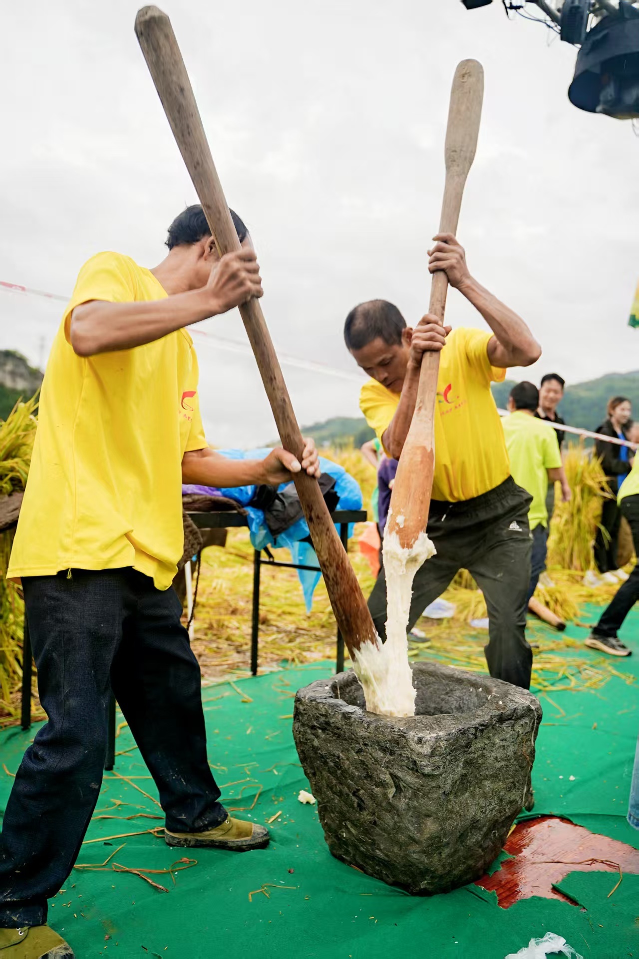 打谷子比賽現(xiàn)場(chǎng)。韋紅莉攝