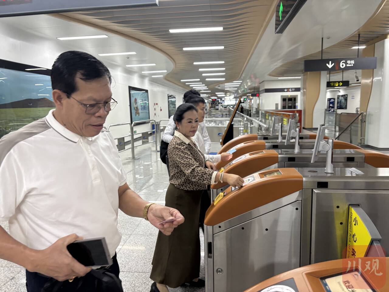 而在前一日,成都軌道交通9號線孵化園站,代表團成員已體驗過無人駕駛地鐵的便捷與科技感。工作人員提前準備好印有大熊貓、金沙遺址等成都文化元素的地鐵卡。接過卡片的代表團成員仔細端詳卡面圖案,不禁稱贊:“連交通卡都充滿地域特色!”列車平穩運行中,工作人員詳細介紹無人駕駛技術的安全性與運營效率。“這條線路每日客流量有多少?未來老撾的城市能否借鑒這樣的技術?”代表團成員接連提問。在得到細致解答后,大家由衷贊嘆:“從購票、刷卡到乘車,全程都能感受到智能化帶來的便利。成都在城市建設中兼顧效率與人文關懷的理念,值得我們學習。”