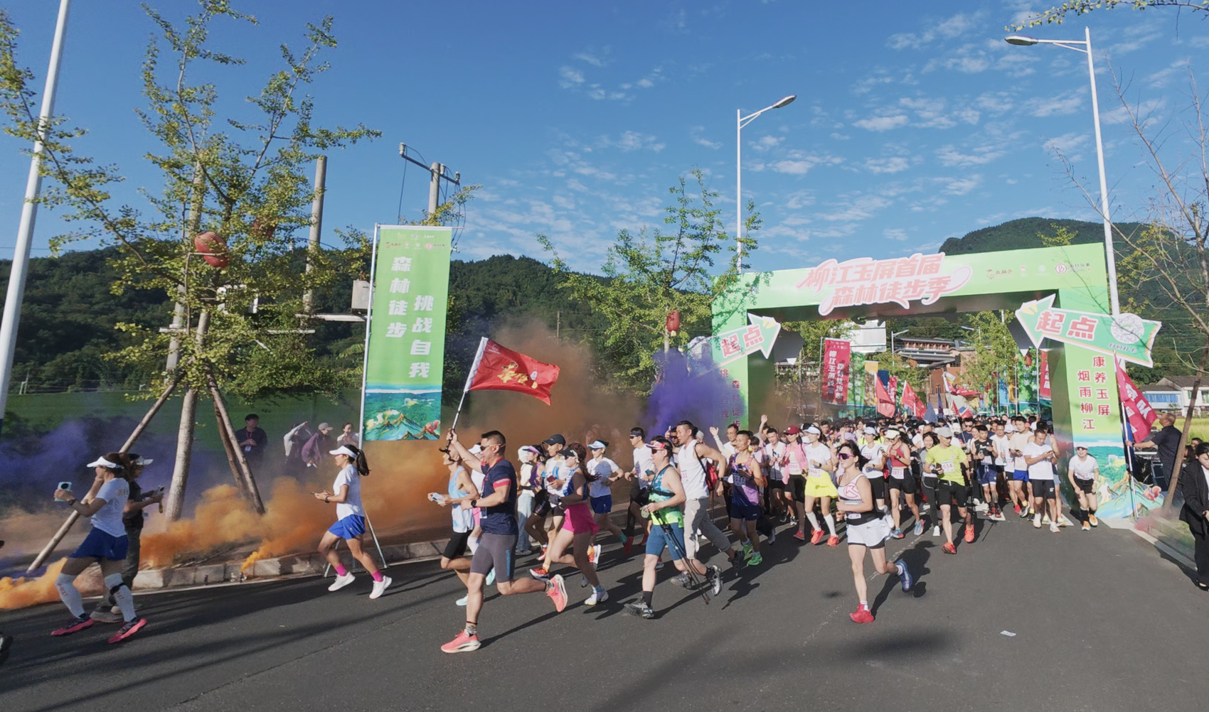 隨著發令槍響,參賽選手們在首站打卡后,沿著精心設計的11.66公里徒步路線前行。路線穿梭于玉屏山森林核心區域,沿途不僅有茂密的林木、清澈的山間溪流,還設置了清晰指引標識與多處補給點、打卡點,參賽選手在徒步的同時,沉浸式感受柳江玉屏旅游度假區的魅力。