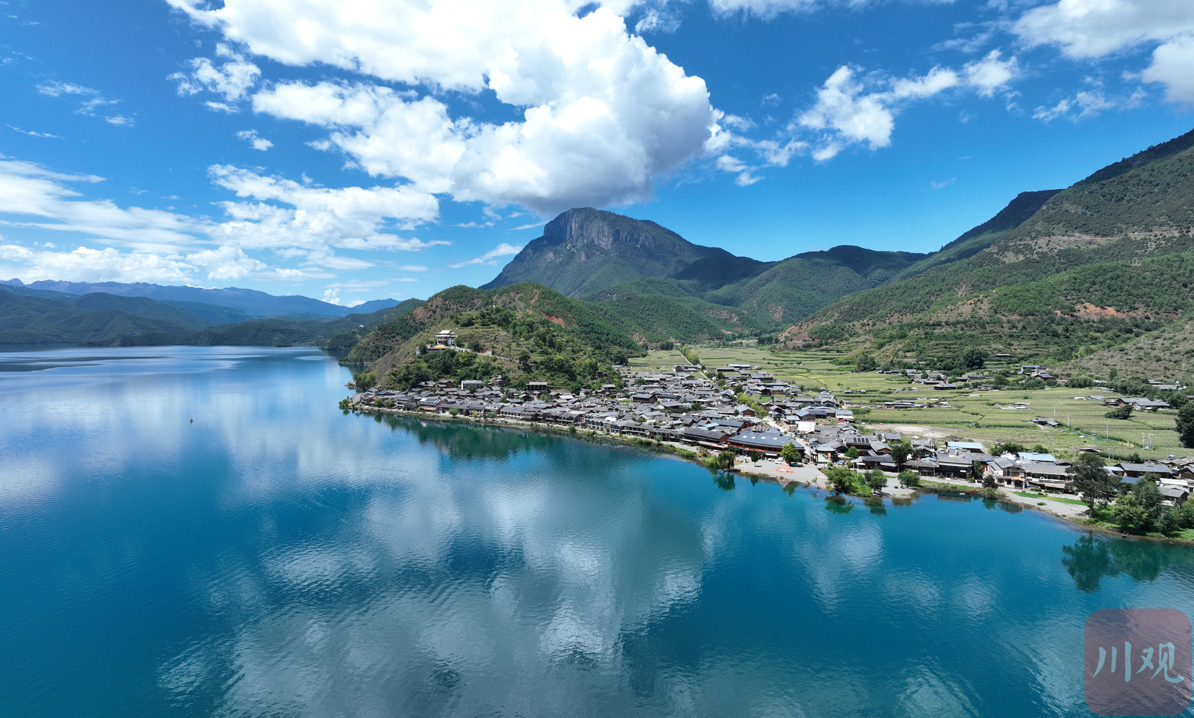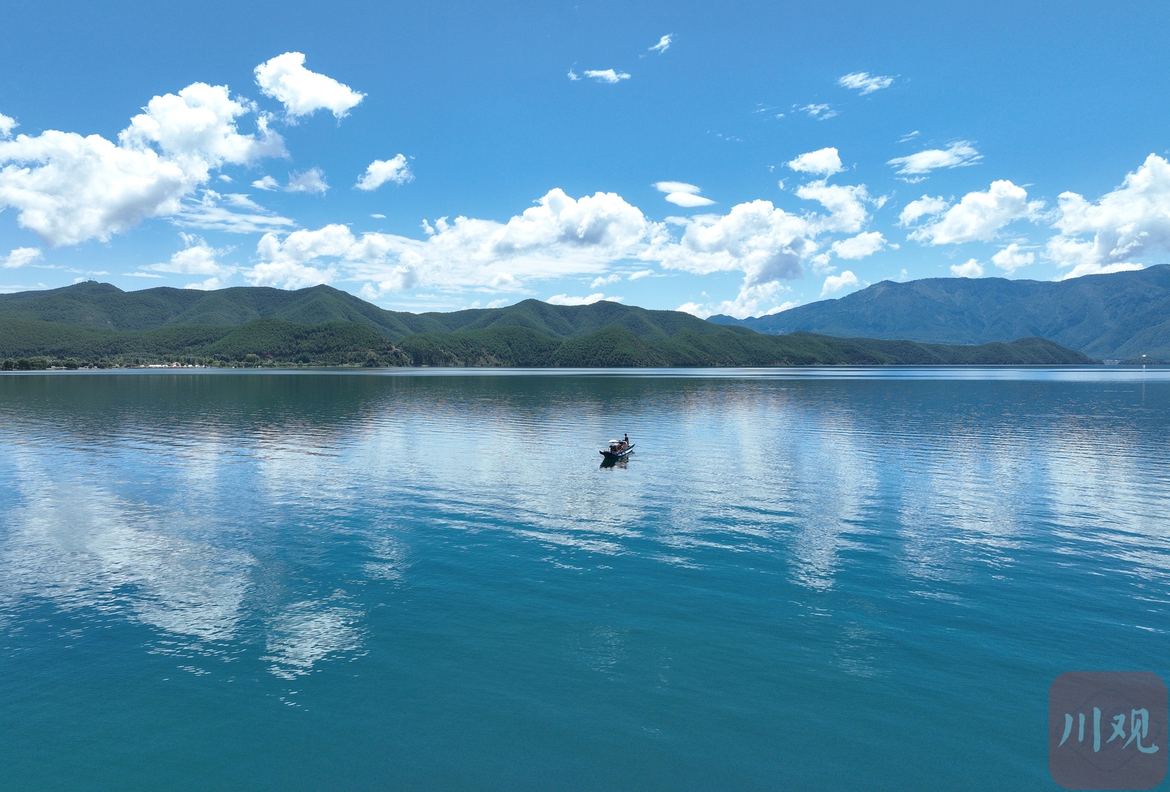 秋高氣爽在瀘沽湖具象化了,藍天白云碧水+轉山轉海節,還有更別致的所在嗎?