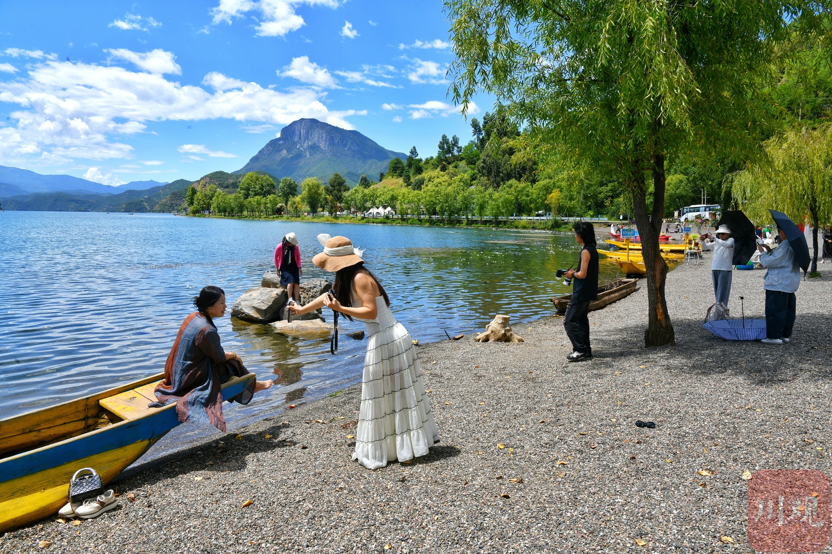 來自湖南長沙的王女士與同伴租車自駕到訪,首次邂逅瀘沽湖便被深深吸引。“去過不少地方,還是四川的風景最讓人驚艷。”她坦言,原本計劃短暫停留,因恰逢瀘沽湖即將舉辦的轉山轉海節,遂決定延長行程,沉浸式體驗瀘沽湖的自然風光與獨特文化氛圍。