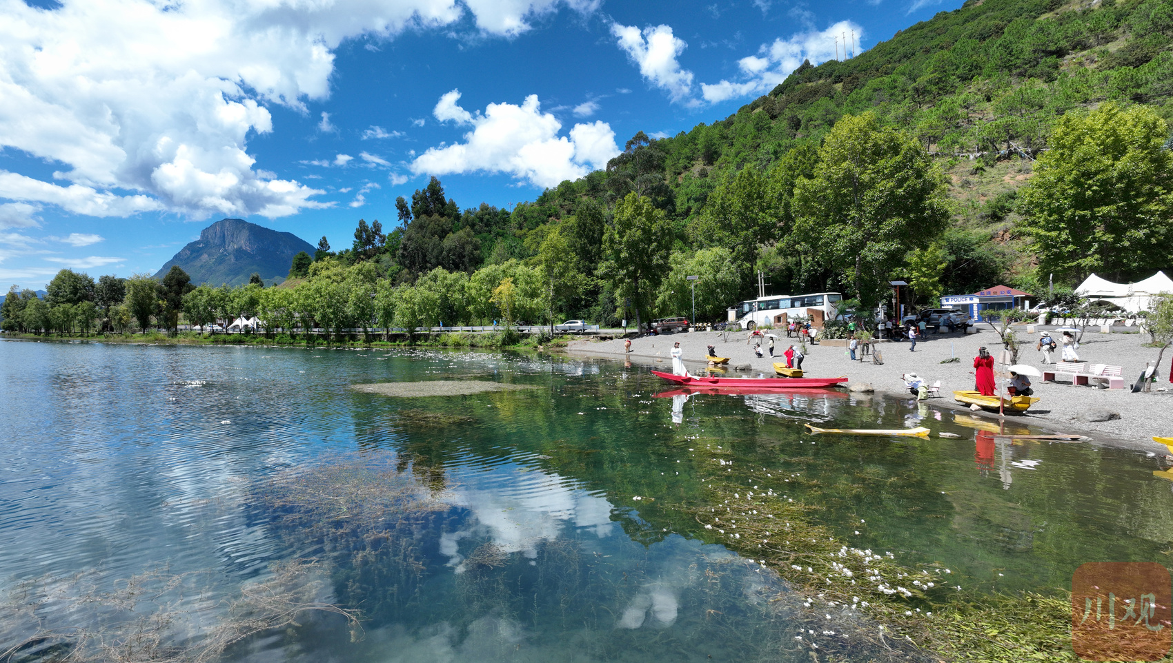 9月13日,瀘沽湖歷經夜雨洗禮后煥然一新,空氣清新澄澈,湖光山色相映成趣,盡顯秋日迷人景致。清晨起,情人灘景點便陸續迎來多批乘坐旅游大巴的游客,藍天白云映襯下,每一處視野都宛如徐徐展開的山水畫卷。