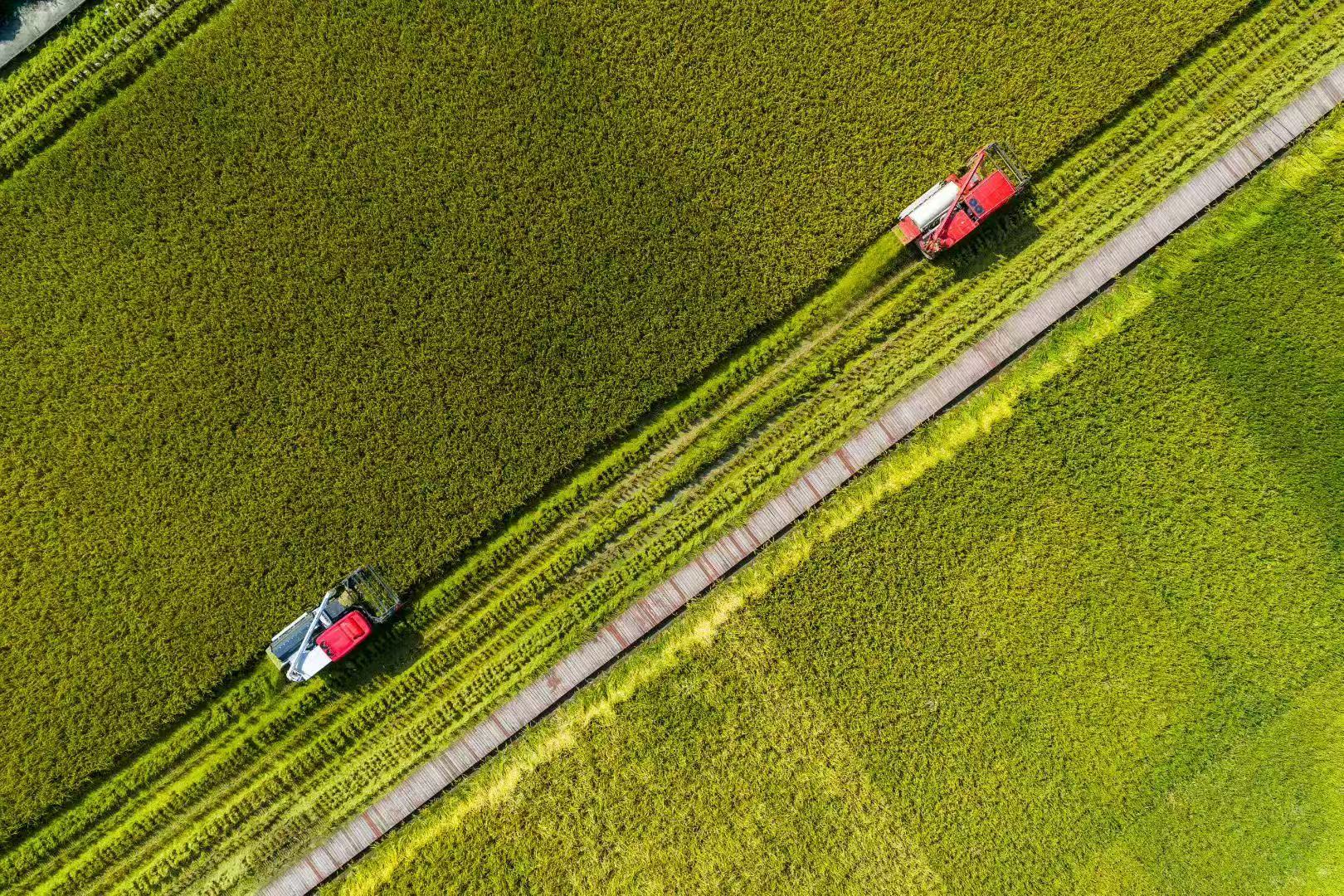 據悉,今年崇州水稻種植面積約32萬畝,預計產量17.7萬噸,收割時間將持續到9月底。