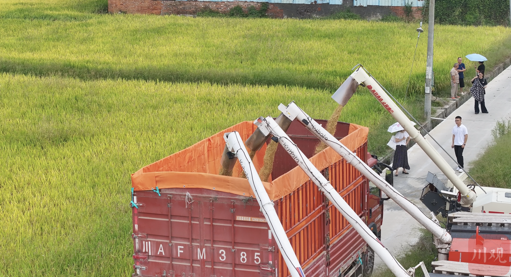 9月15日,在成都崇州市舉行的這場測產(chǎn)活動,備受關(guān)注。它意味著當(dāng)?shù)嘏e行的第二屆“天府糧倉”人工智能水稻種植挑戰(zhàn)賽進(jìn)入收官階段。當(dāng)天進(jìn)行的是這場挑戰(zhàn)賽的首支隊伍測產(chǎn)。