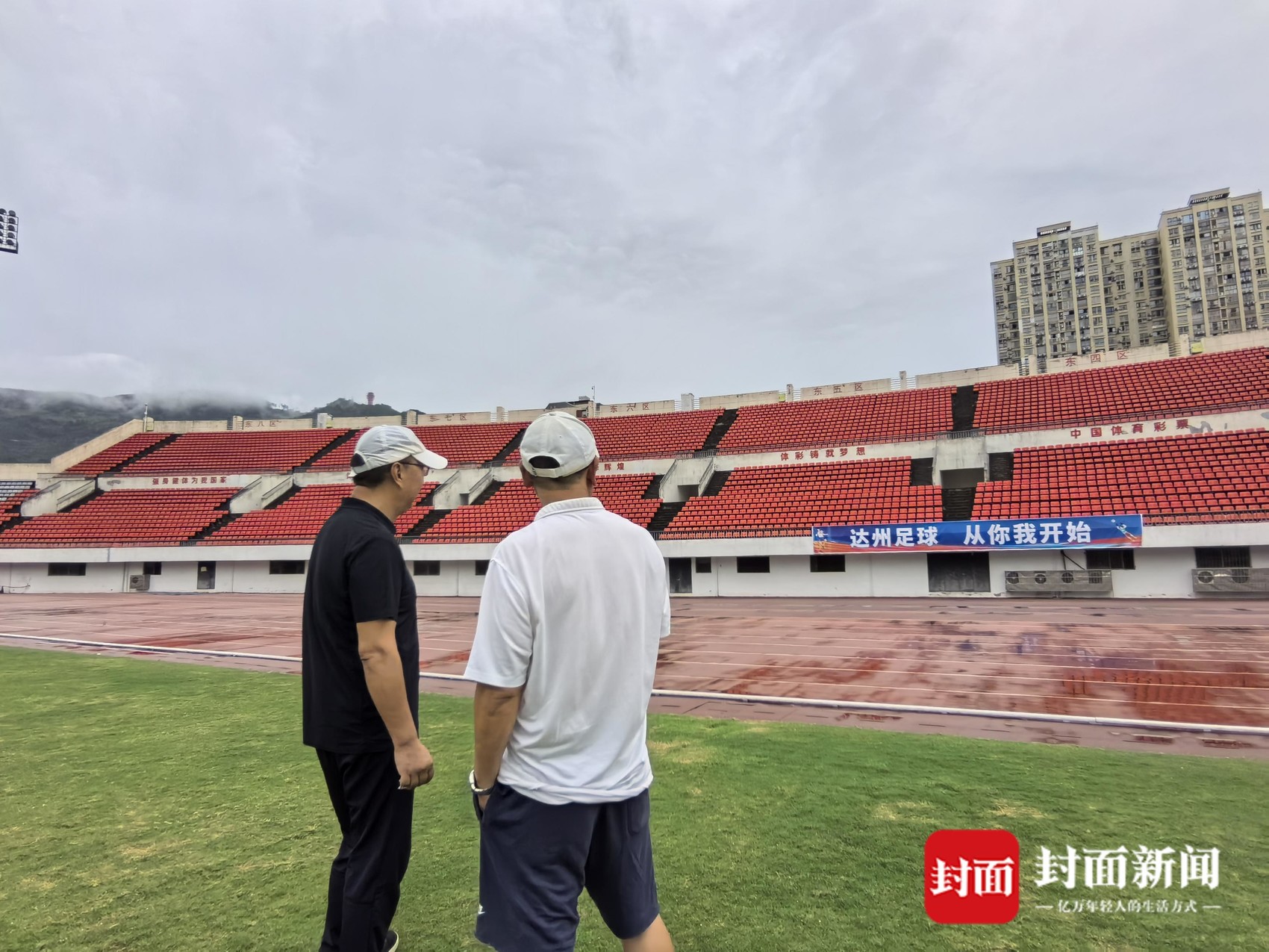 達州足協主席岳毅和主教練馮濤在球場上等著隊員們