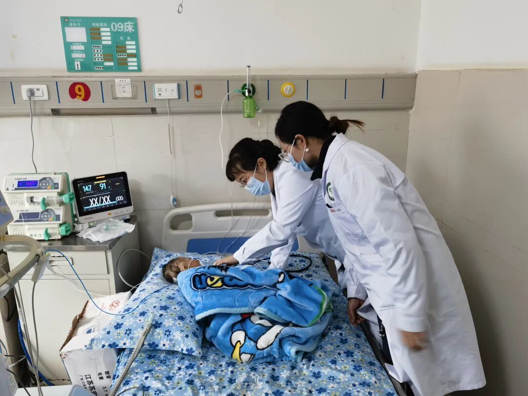 醫療隊醫生根據患兒病情制定詳細的治療方案,包括藥物的選擇、呼吸機參數調整、氣道的管理等?;純貉芗?,輸液和采血都十分困難,醫療隊護士熟練建立靜脈通道、順利完成采血操作,并與當地護理人員積極配合參與后續護理工作。最終,經過徹夜不眠的堅守和共同努力,患兒病情明顯好轉,生命體征趨于穩定,呼吸機參數順利下調。