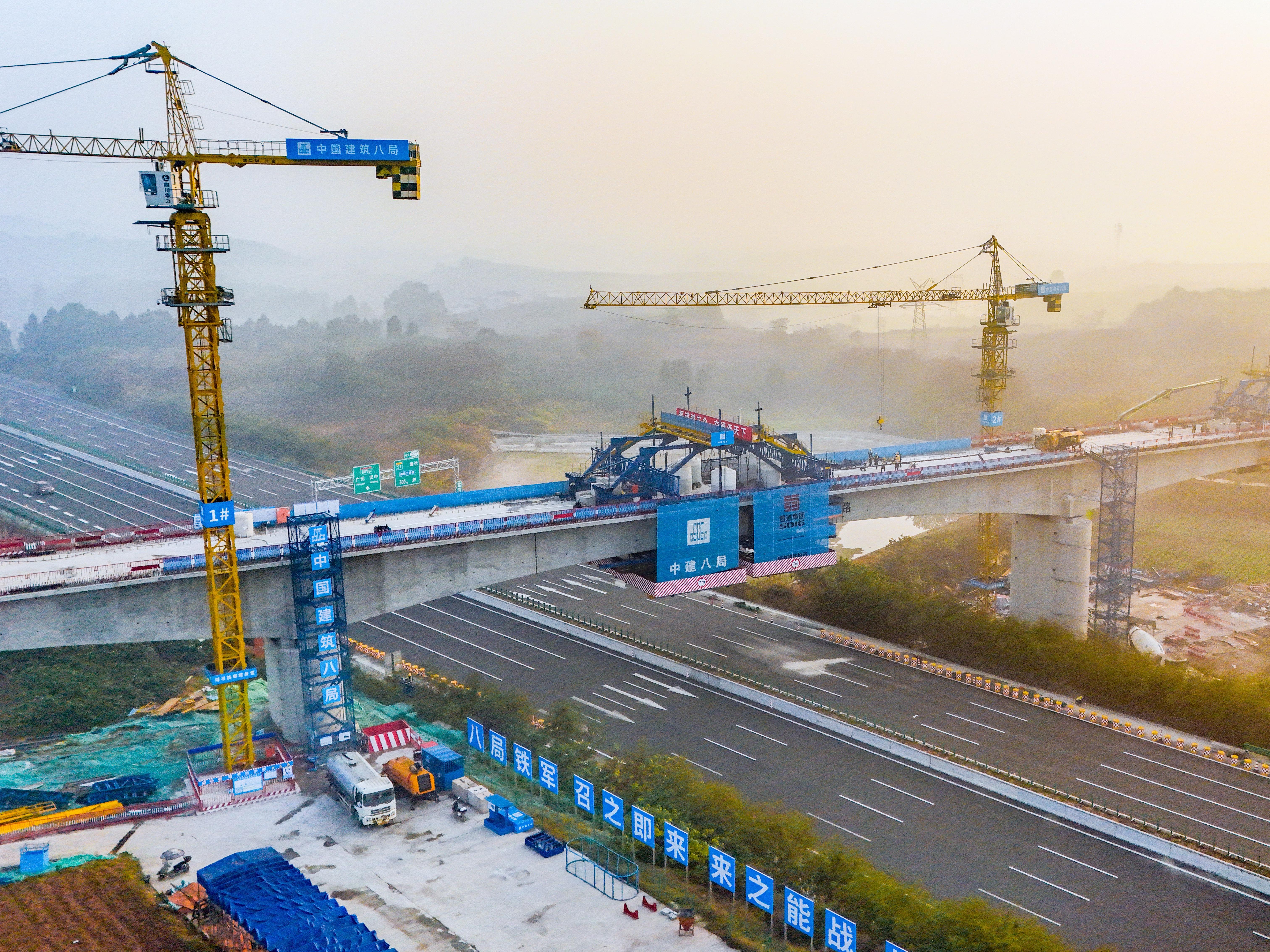 此次合龍的青島西風(fēng)河特大橋跨沈海高速連續(xù)梁工程是全線關(guān)鍵控制性工程,橋梁總長272米,總重超17000噸,為全線最大跨度連續(xù)梁,施工中需上跨運(yùn)行中的沈海高速,對(duì)線形控制和施工防護(hù)提出極高要求。