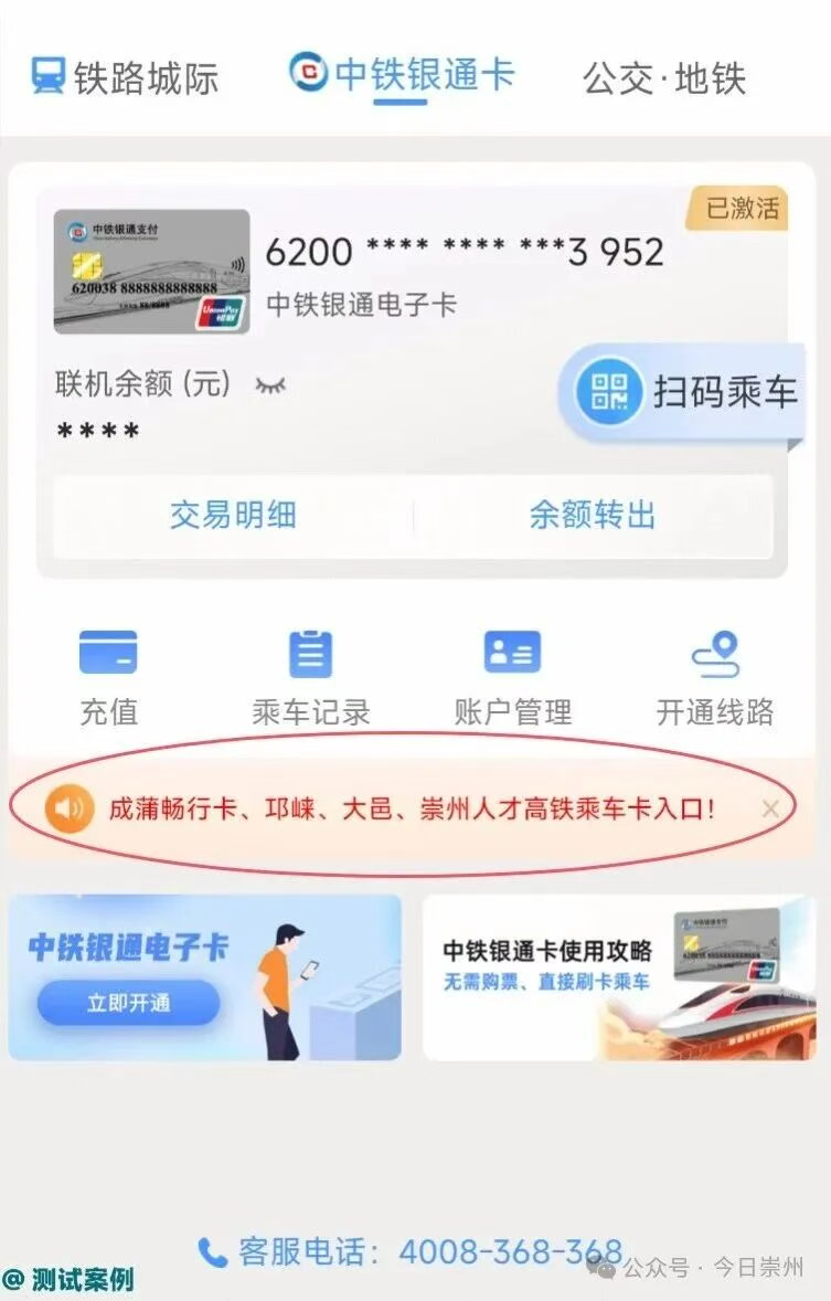 崇州人才高鐵免費乘車是由崇州市聯(lián)合中國鐵路成都局集團有限公司、中鐵銀通支付有限公司,在指定線路針對特定人群開展的高鐵免費乘車活動,活動試運行時間2年,只要始發(fā)站為崇州站、羊馬站兩處崇州市域范圍內(nèi)的高鐵站,就可免費乘坐往返自成雅城際鐵路沿線在內(nèi)的溫江、邛崍、大邑、雅安等站點,省級高鐵線路上的重慶北、長壽北、威遠、自貢、瀘州等站點,以及成都東、成都南、成都西、天府機場等成都樞紐站點的列車。