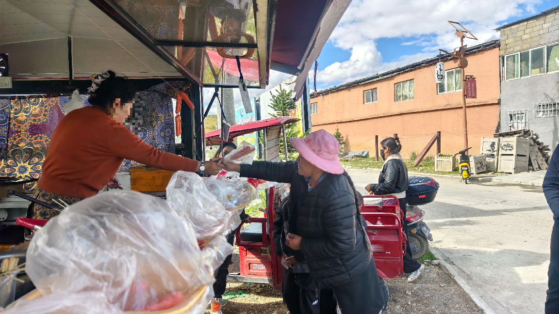 “志瑪(化名)阿姨,兩串烤面筋、一把烤韭菜!”9月14日傍晚,理塘縣高城鎮亞吉小區路口的移動餐車前又排起了長隊,志瑪熟練地翻轉著烤串,孜然與肉香在空氣中彌漫。