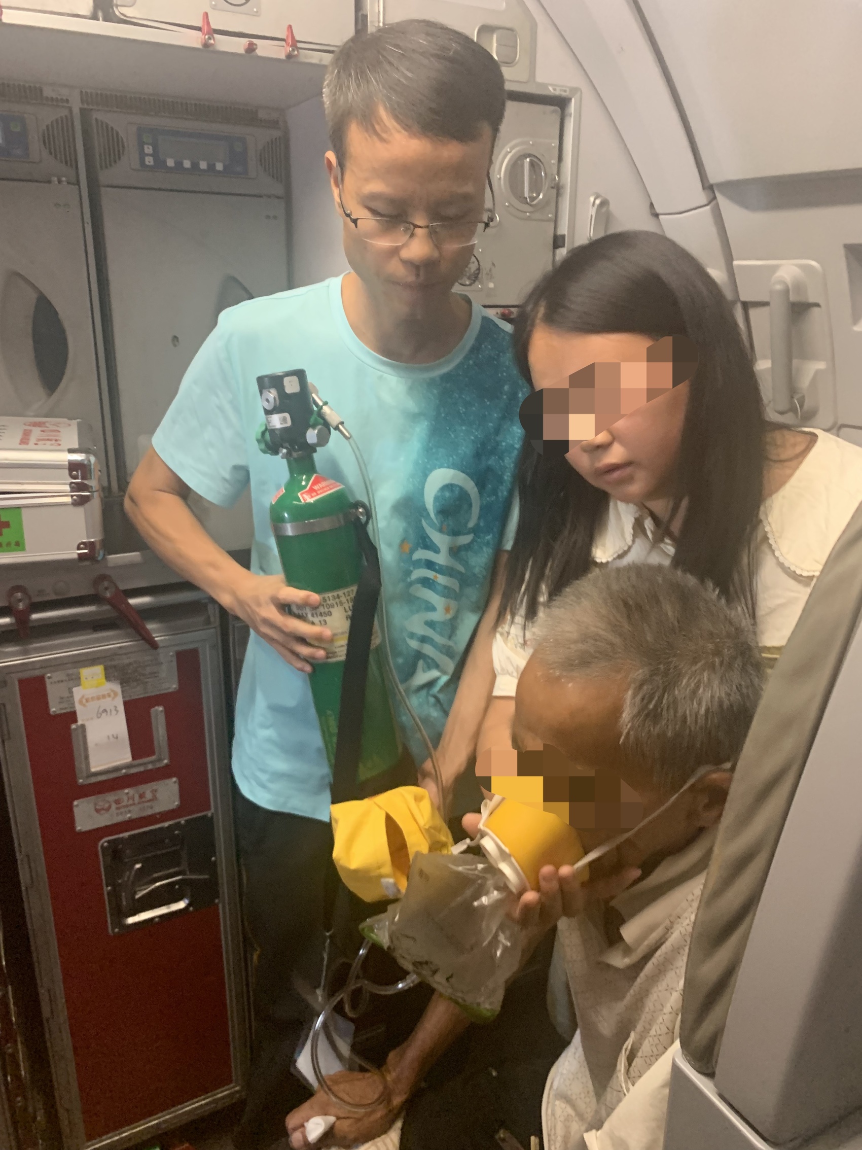 經一系列的急救措施后,老人的情況慢慢好轉,基本生命體征也趨于正常。為了不出現意外,在余下的1個多小時飛行里,付志彬一直守護在老人身邊,密切監護、并不斷安慰老人。直到飛機落地后,目送老人被送上救護車。