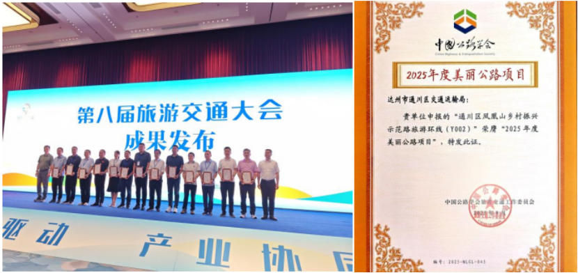9月11日至12日,第八屆旅游交通大會在湖北宜昌召開,會議由中國公路學會主辦。大會發布了2025年度交通與旅游融合創新項目、美麗公路項目及融合發展研究成果。通川區鳳凰山鄉村振興示范路旅游環線榮獲“2025年度美麗公路項目”。