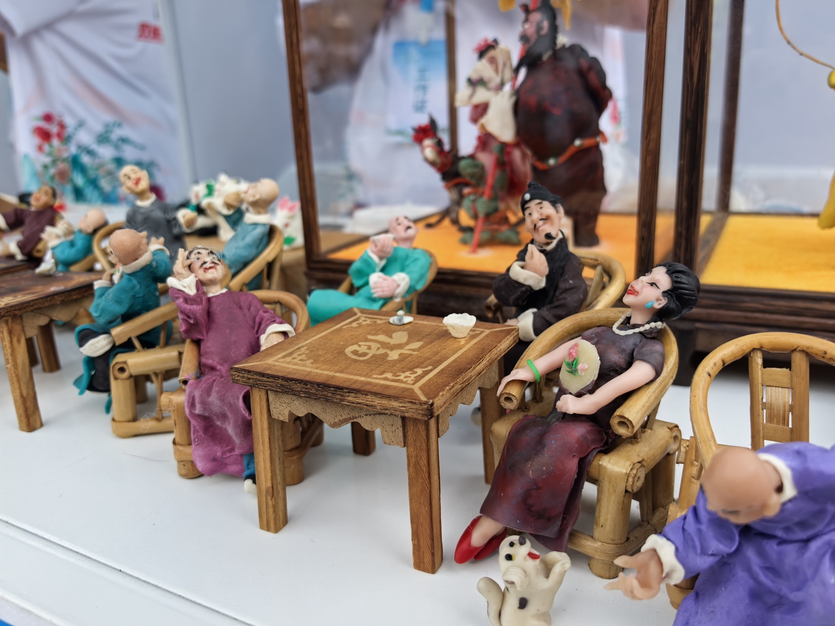 “宜賓面塑以面為原料,是傳統民間雕塑技藝,特點是融入地方人文地貌元素,且能長期保存。”四川省非物質文化遺產保護項目“宜賓面塑”第四代傳承人賴維君一邊演示面塑制作,一邊向游客介紹,“今天特意帶來茶館、戲劇人物等造型,就是想展現宜賓傳統文化。非遺不能只藏在文化館里,要活在當代,讓大家看得到、體驗得到。”