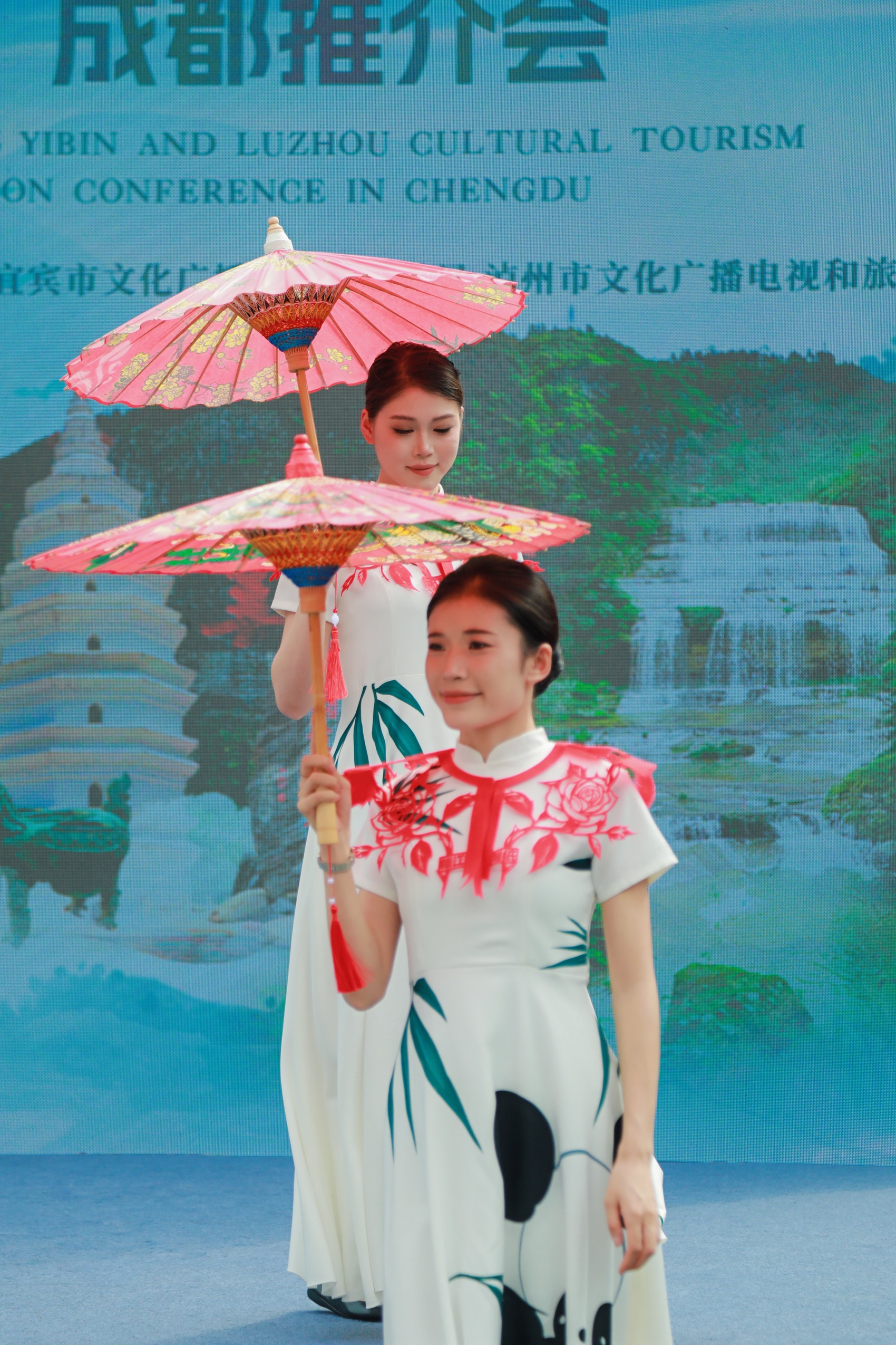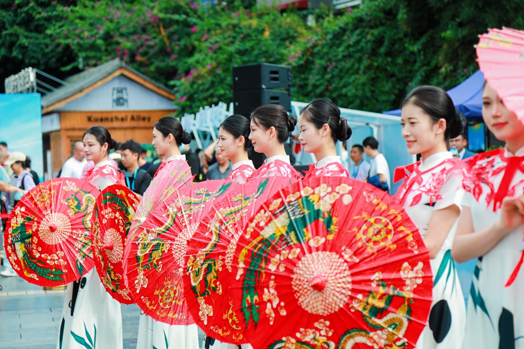 “好精致的剪紙!”“這油紙傘轉起來真好看!”9月16日下午,成都寬窄巷子游人如織,“錦繡天府·安逸四川”——“來宜瀘·耍一路”2025宜賓、瀘州文旅成都推介會在此拉開帷幕。隨著開場秀《宜瀘風情》上演,一場融合川南韻味的文化走秀驚艷亮相,既是“行走的非遺展演”,更讓川南風情與蓉城煙火氣激烈碰撞,引得過往游客紛紛駐足,舉起手機記錄精彩瞬間。