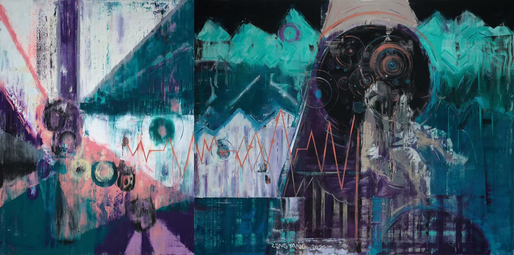 曾楊作品《星際系列-No.2》,布面丙烯,200×410cm,2024年