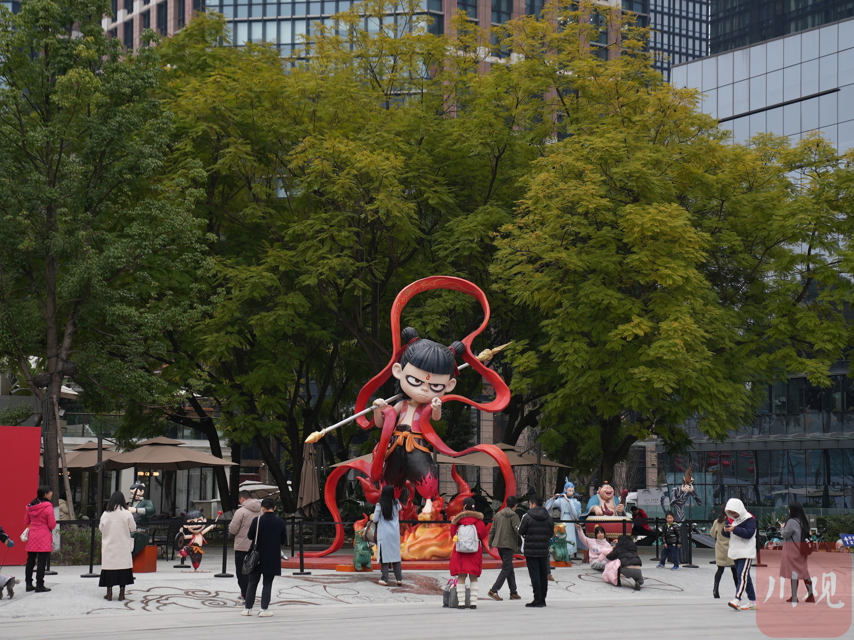 從中華優秀傳統文化中汲取養分,今年以來“哪吒”持續掀起熱潮。“四川造”動畫電影《哪吒之魔童鬧海》一路刷新紀錄,斬獲超百億票房,躋身全球影史第五位。操著一口“川普”的太乙真人、原型來自三星堆青銅人像的“顯眼包”結界獸等,均是巴蜀文化提供的靈感。