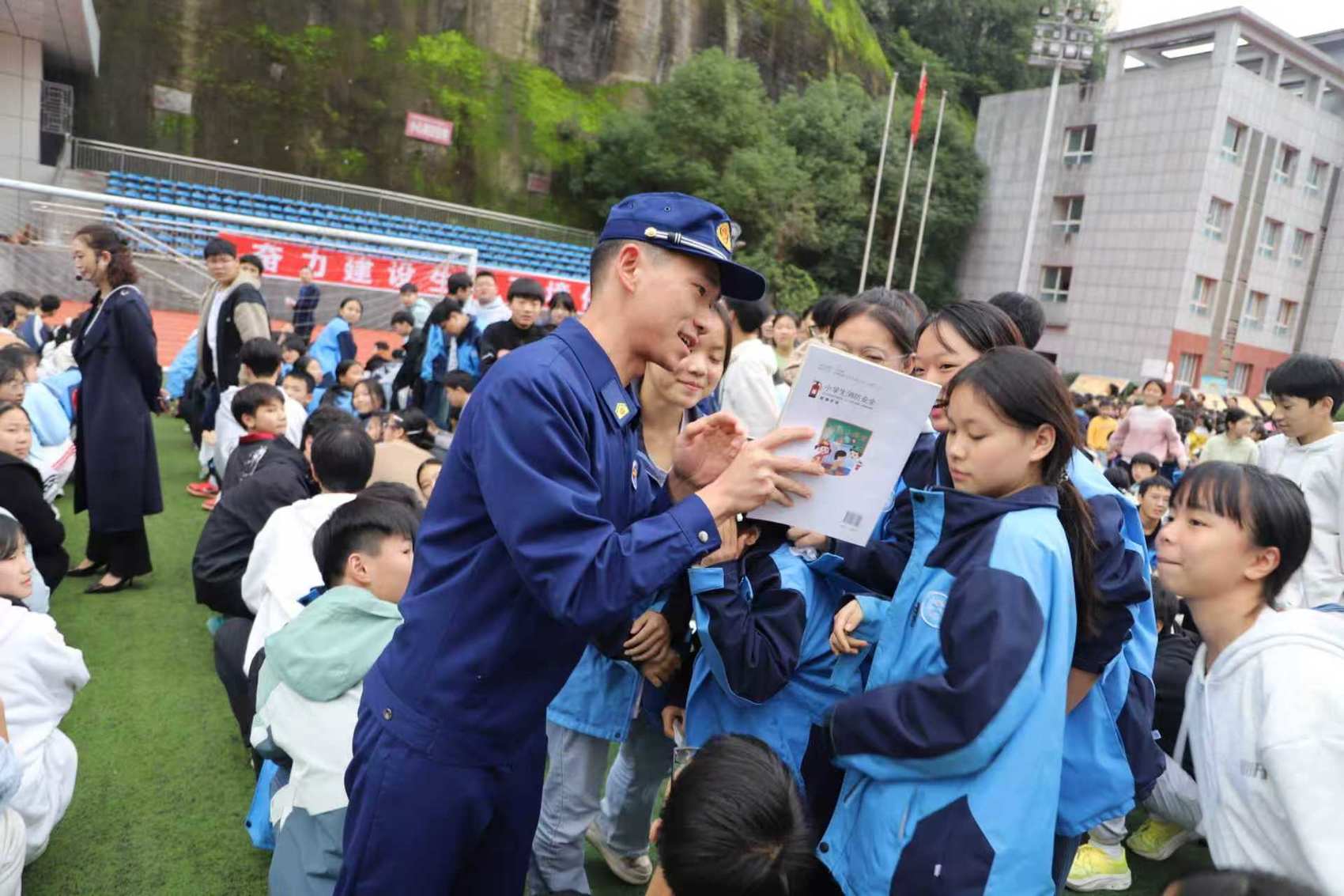 巴中市消防員進入轄區學校科普消防安全知識。