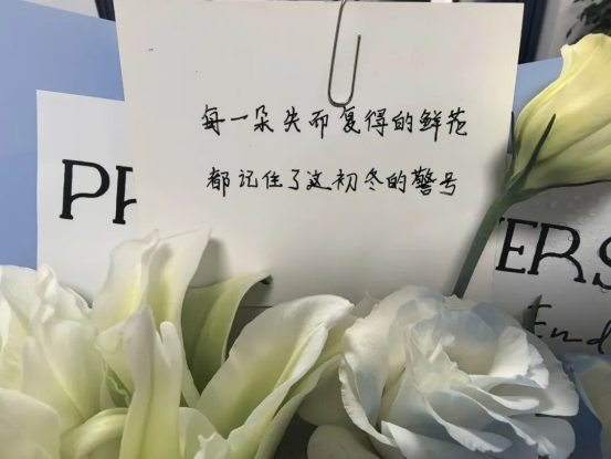 “這破案速度,花都還沒蔫呢!”青女士從民警手中接回失而復得的鮮花時,連連道謝。更讓人暖心的是,第二天,她帶上一束精心包扎的鮮花來到赤城派出所,要將這份“美麗”回贈給破案神速的民警。“以花謝花!”青女士開心地說,民警接過花束,發現里面竟藏著精巧的花語卡片:“每一朵失而復得的鮮花,都記住了這初冬的警號”。