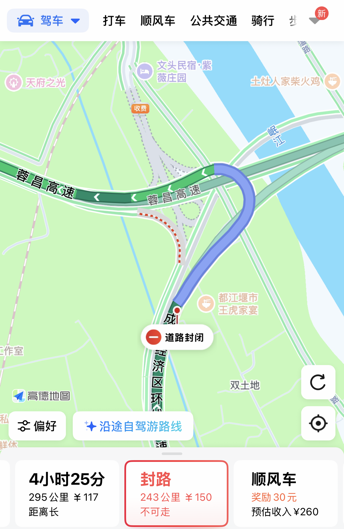 據(jù)介紹,從路網(wǎng)設(shè)計來看,從玉堂南互通經(jīng)過收費站下高速后,銜接的是都江堰市區(qū)的玉沿路。但玉沿路目前處于“斷路”狀態(tài),車輛無法通過玉堂南收費站下高速,因此互通也處于封閉狀態(tài)。