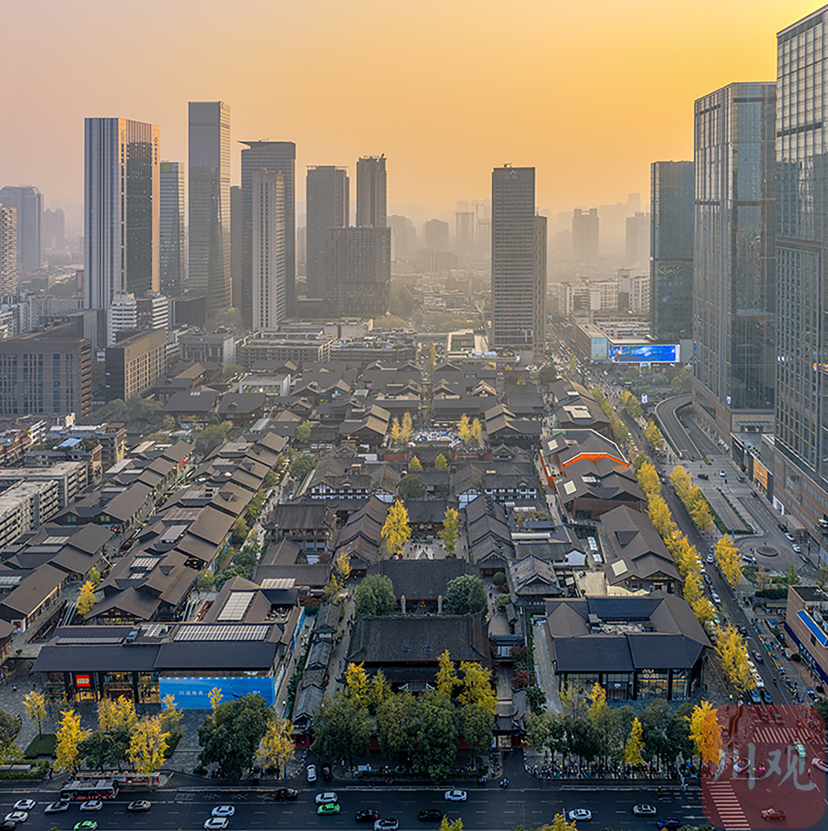 11月30日,夕陽下的大慈寺與太古里一道,繪就出初冬“成都封面”。C視覺簽約攝影師 王瑞林