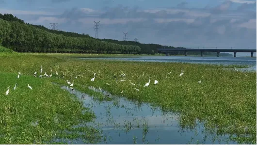 寶坻區(qū)積極開展清淤改造工程,強化“一河一策”,持續(xù)開展?jié)竦乇Wo修復(fù),通過上游生態(tài)調(diào)水補水、河道造林綠化、推進企業(yè)綠色轉(zhuǎn)型等,積極解決水資源、水生態(tài)、水環(huán)境問題,累計投入綜合治理資金8億余元。潮白河國家濕地公園以潮白新河為主軸、兩岸生態(tài)廊道為綠脈,造林綠化2.1萬畝、植樹80萬株、恢復(fù)濕地5000余畝,形成了水綠交織的生動景觀。濕地公園生態(tài)資源豐富,提供了良好的棲息繁衍條件,截至目前,共有野生植物308種,野生動物303種,其中,國家級野生保護鳥類19種,土著魚類“潮白河鯽魚”種群持續(xù)壯大,消失多年的“潮白河銀魚”再次現(xiàn)身。如今的潮白新河河暢水綠、魚翔淺底、水草豐美、萬鳥翔集,已成為連接京津冀城市群與渤海灣的關(guān)鍵生態(tài)廊道。