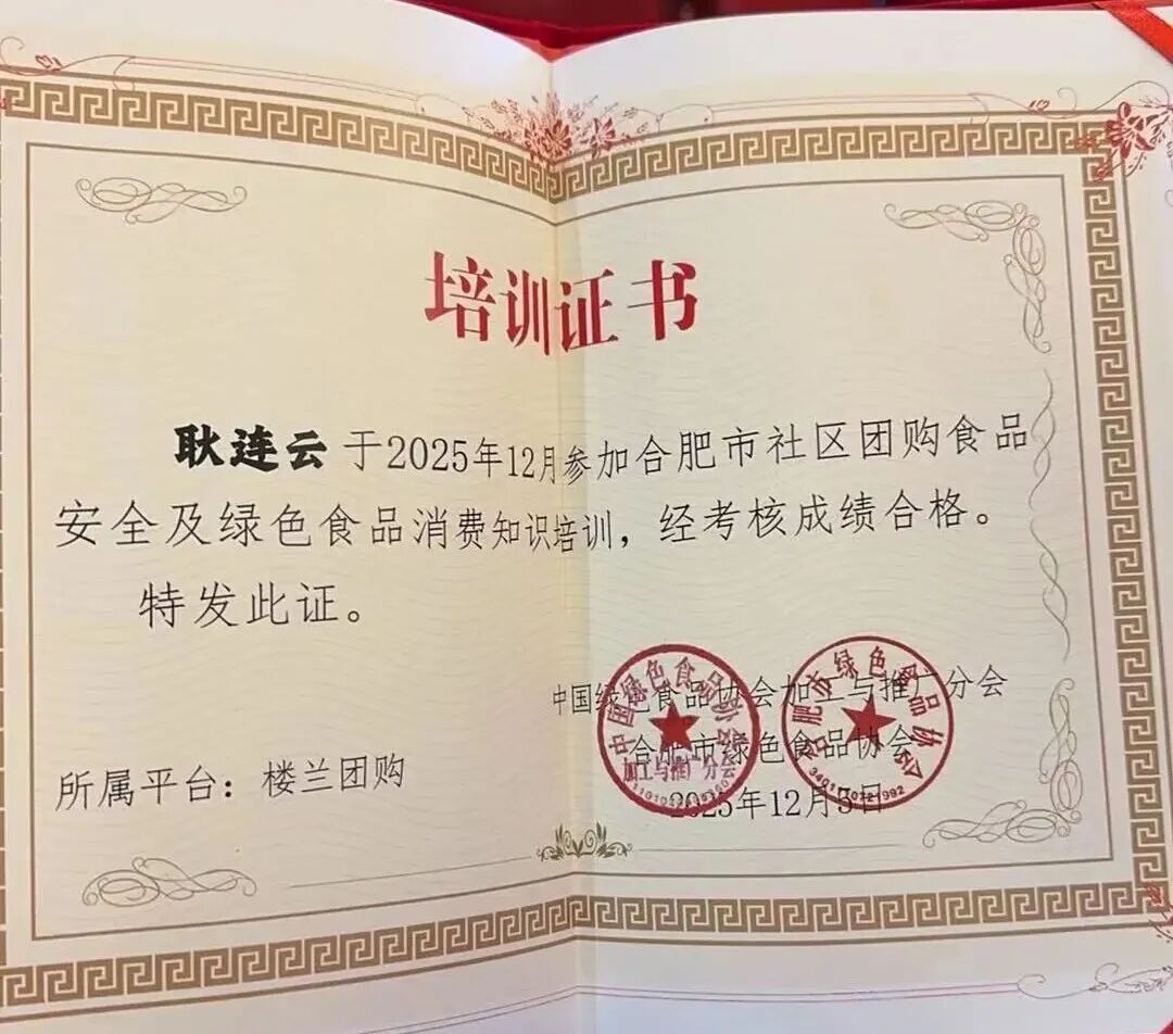 “做社區團購的團長還要參加培訓啊?”12月5日下午,剛拿到培訓證書的合肥風景雅苑小區團購團長王秋雪,第一時間就將證書照片分享到自己300多人的團購群,有群友感到驚訝。