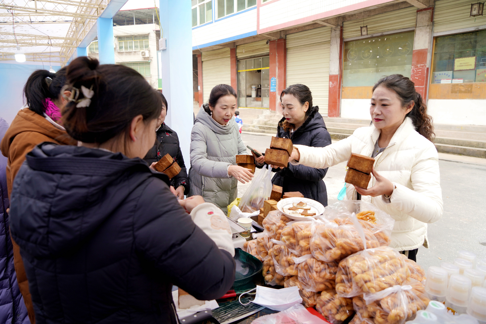 賽場外,特色產(chǎn)品展示區(qū)人頭攢動。通江銀耳、火米糖、炸酥肉、黑木耳、核桃、野生菌菇等農(nóng)特產(chǎn)品琳瑯滿目,非遺傳承人現(xiàn)場講解制作工藝,讓鄉(xiāng)親們近距離感受通江非遺的獨特魅力。同時,書法家寫春聯(lián)、醫(yī)護人員義診、流動圖書車送讀上門等服務(wù)也受到了歡迎。
