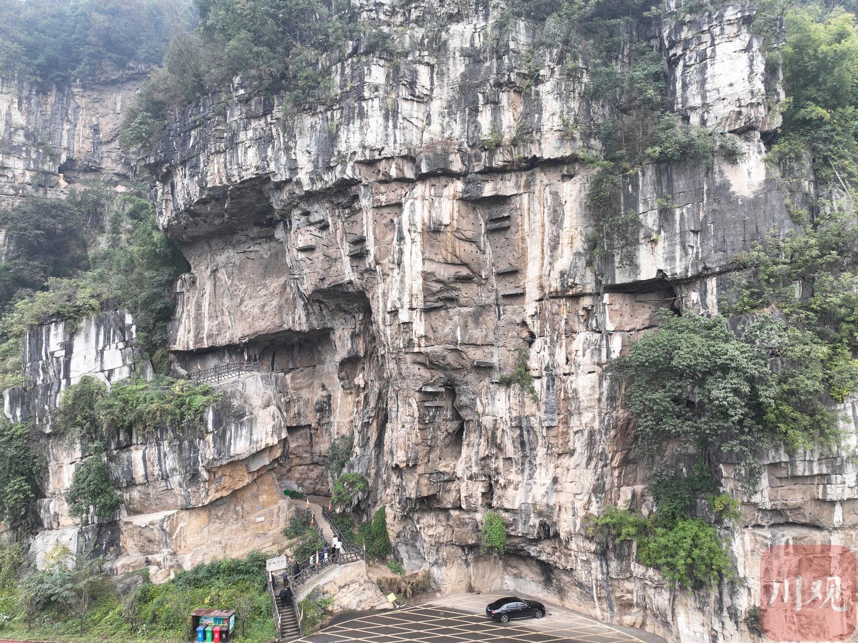 “到了!”從珙縣出發(fā)前往洛表鎮(zhèn),驅(qū)車約1小時(shí)后,鎮(zhèn)黨委委員、人大主席余過(guò)江大聲提醒,到了珙縣僰人懸棺的核心區(qū)之一——棺材鋪景點(diǎn)。