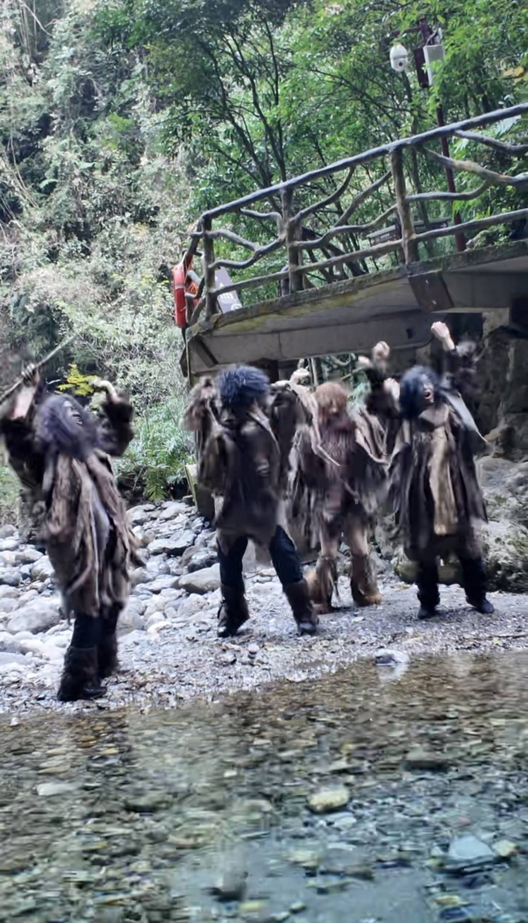 達州巴山大峽谷里“野人”NPC和游客互動。(受訪者供圖)