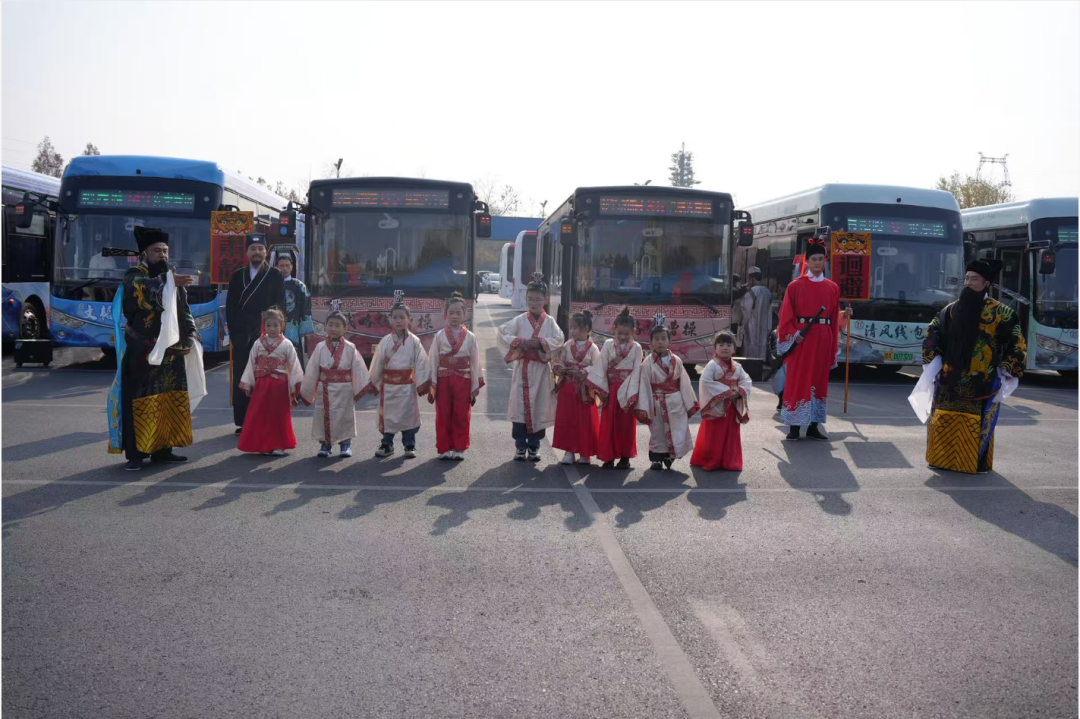 只見149路線長潘軍身著古裝,整個公交車則化身宋代書院,淺色內(nèi)飾搭配仿竹簡車壁,古雅溫潤的內(nèi)飾配以仿竹簡鐫刻的《家訓(xùn)》與“讀書六法”,報站聲里傳遞“格物致知”的治學(xué)初心。當車輛穿行于合肥市經(jīng)開區(qū)大學(xué)城,便形成“一路書香伴出行,半城文脈入畫來”的獨特風景。