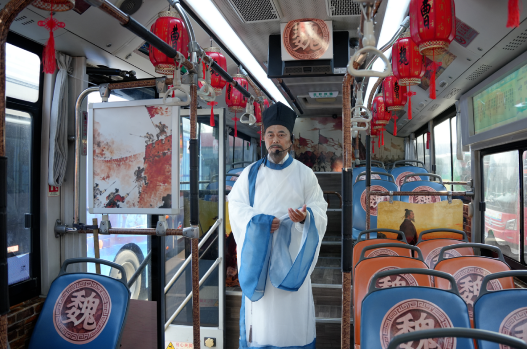 85路武略線車身采取暗紅色色調(diào)來展現(xiàn)曹操率大軍征伐的場景,展現(xiàn)出濃厚的歷史氣息,車內(nèi)還精心布置了古代的戰(zhàn)鼓、燈籠等物件,座椅上也都貼上了“東臨碣石,以觀滄海”的詩句和“魏”字標簽,為乘客營造沉浸式體驗。