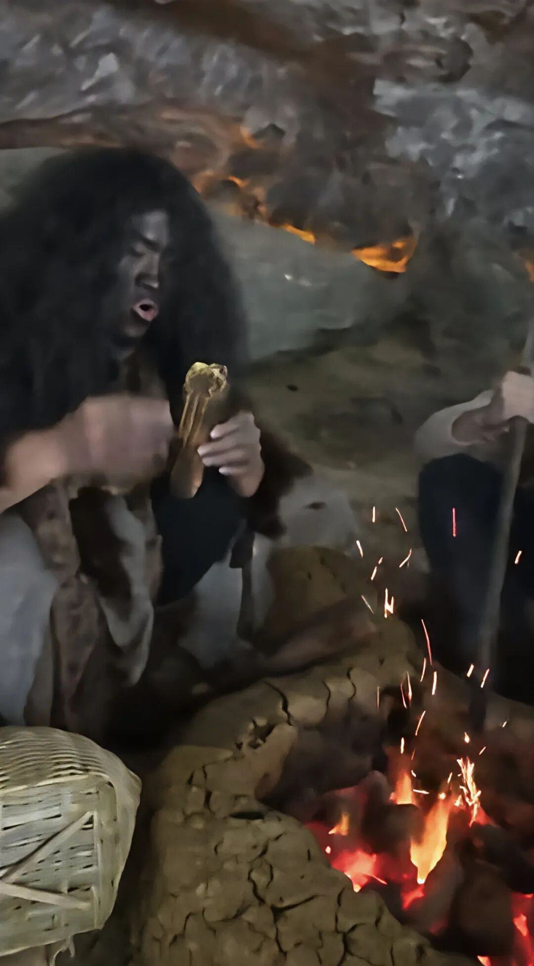 達州巴山大峽谷里“野人”正在烤玉米。(受訪者供圖)