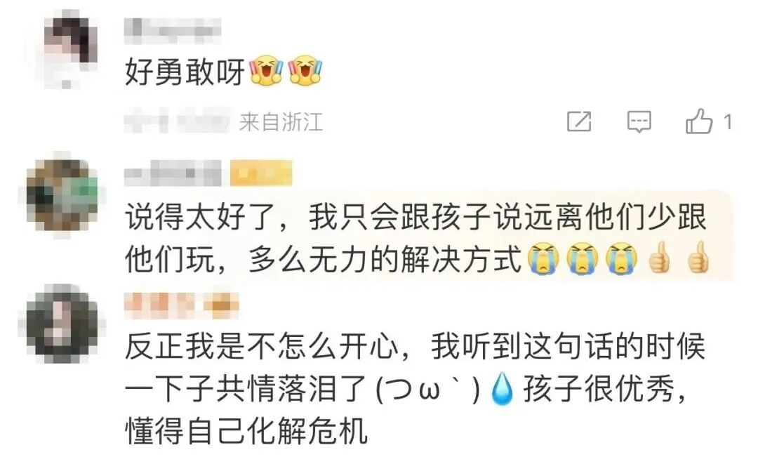同樣可貴且值得被看見的是,這件事妥善處理大概率蘊藏著老師和家長平時教育方式的理性成熟:家長不僅有主動溝通的意識,還有“疏導情緒”的觀念;老師通過班會公開公平公正處理,幫助被欺負的孩子走出陰影。小孩哥勇敢發聲,是這種教育的結果,其實也是教育過程的體現,值得點贊推廣。正如網友們所說,孩子“做了好多成年人都不敢做的事”,是“教育應有的樣子”。