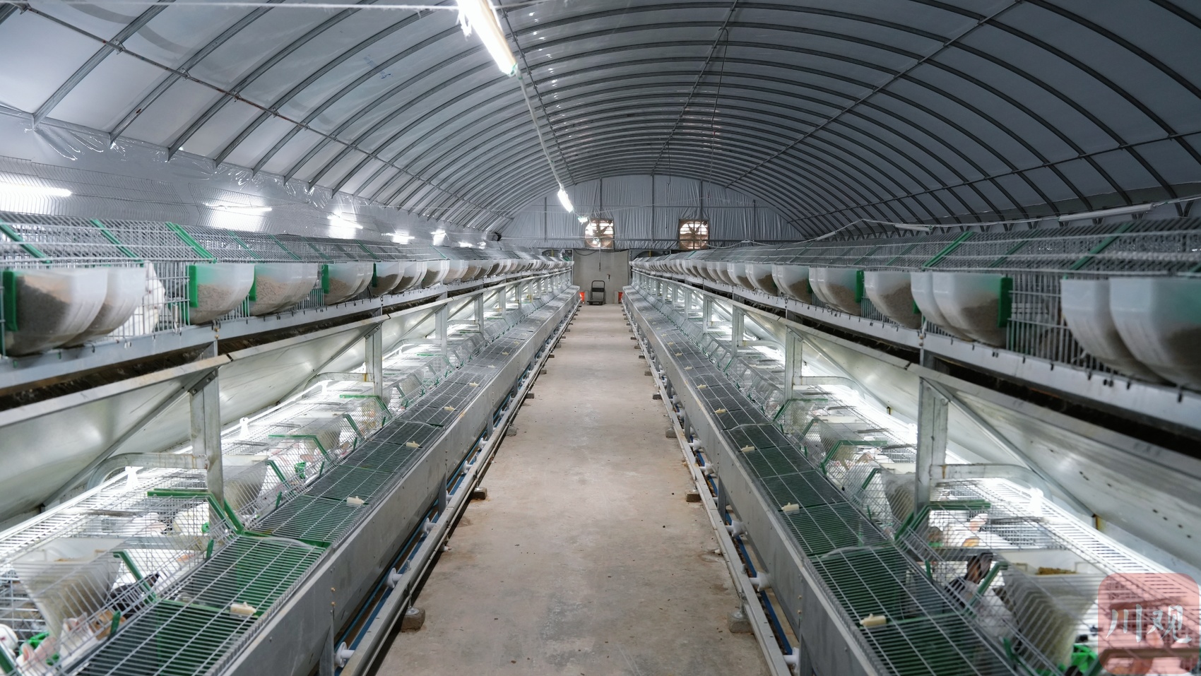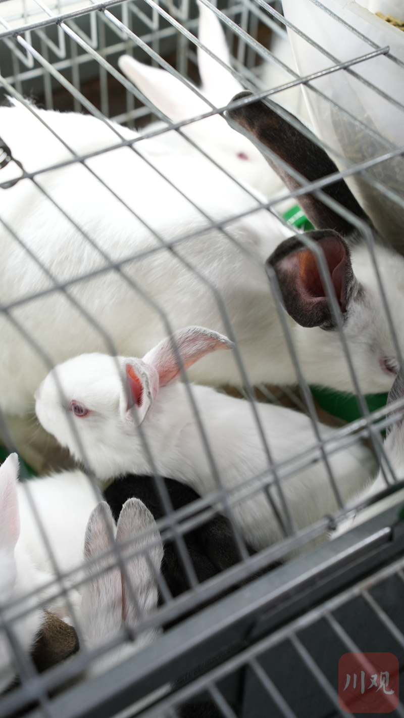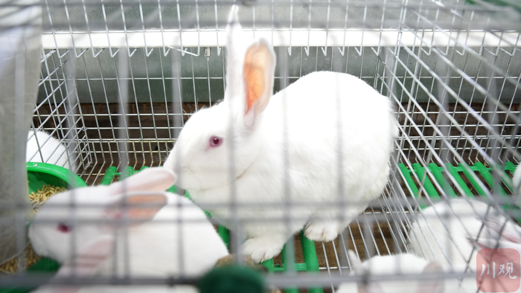 12月10日,宜賓市珙縣珙泉鎮現代化肉兔生態養殖基地,一排排兔籠整齊排列,窸窸窣窣的聲響中,肥碩的兔子正探頭進食。