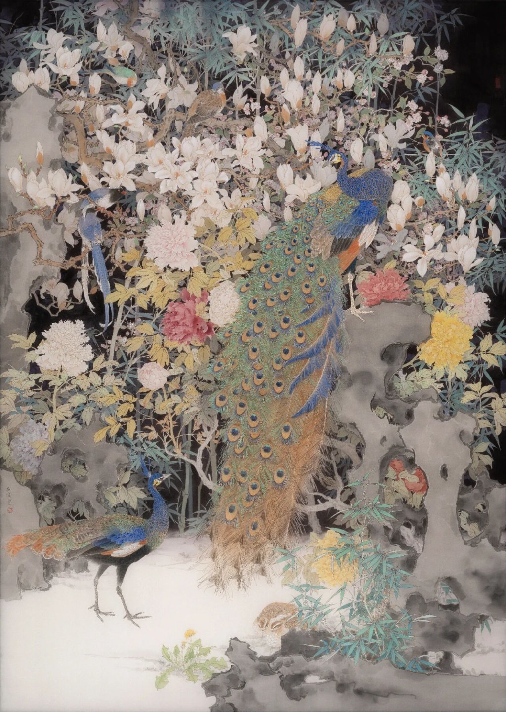 第九屆全國畫院美術作品展覽日前在廣州舉行,四川畫家劉濱的《東風萬里錦》入選其中。劉濱的作品采用中國傳統繪畫“鋪殿花鳥畫”的藝術形式,常選取寓意吉祥、富貴、美好的花鳥等自然元素作為題材,營造祥和氛圍。在技法表現方面,劉濱的作品注重線條的紋飾和色彩的斑斕,常常運用金粉、彩繪等裝飾元素,凸顯華麗、繁復的風格。在繼承傳統工筆技法的基礎上,劉濱結合當代審美語言,通過精細的線條勾勒與多層次渲染,表現鳥類棲息、草木繁茂等場景,凸顯自然生態的微妙動態,呈現出靜謐而富有生機的藝術特質。