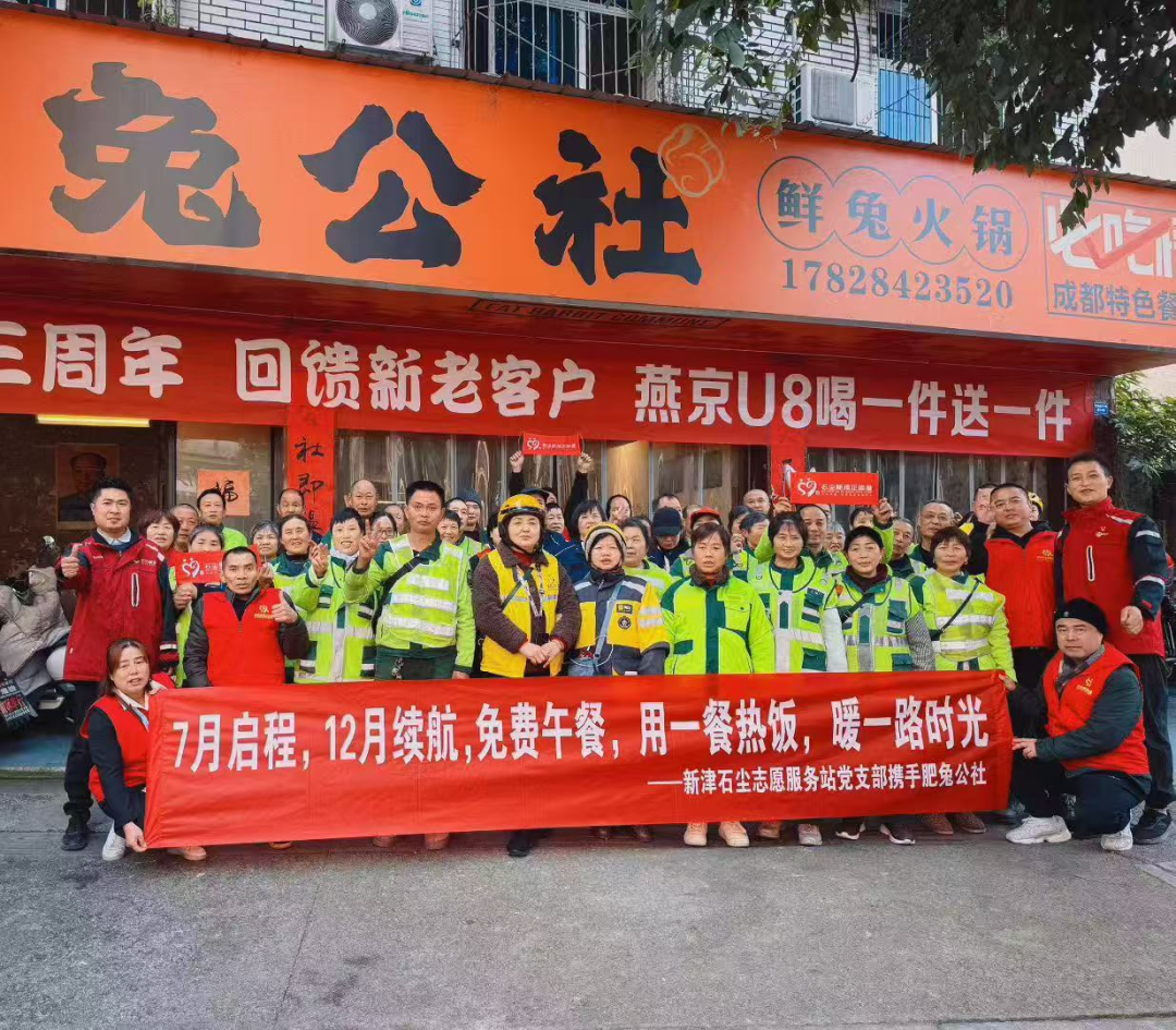 “一頓暖心飯,溫暖一座城。” 12月1日,在成都新津肥兔公社火鍋門前,外賣騎手、網約車司機們圍坐一桌,熱氣騰騰的火鍋驅散了冬日寒意。這是石塵志愿服務站發起的公益就餐活動,也是他17年公益之路的一個縮影。石塵發現新就業群體“吃飯難、吃好難”的問題后,迅速鏈接資源,聯合本土餐飲品牌推出免費暖心餐,不僅提供營養豐富的菜品和素食選項,還通過“需求清單”收集訴求,協調解決解暑藥品、電動車充電等問題,讓一餐飯成為情感連接的紐帶。